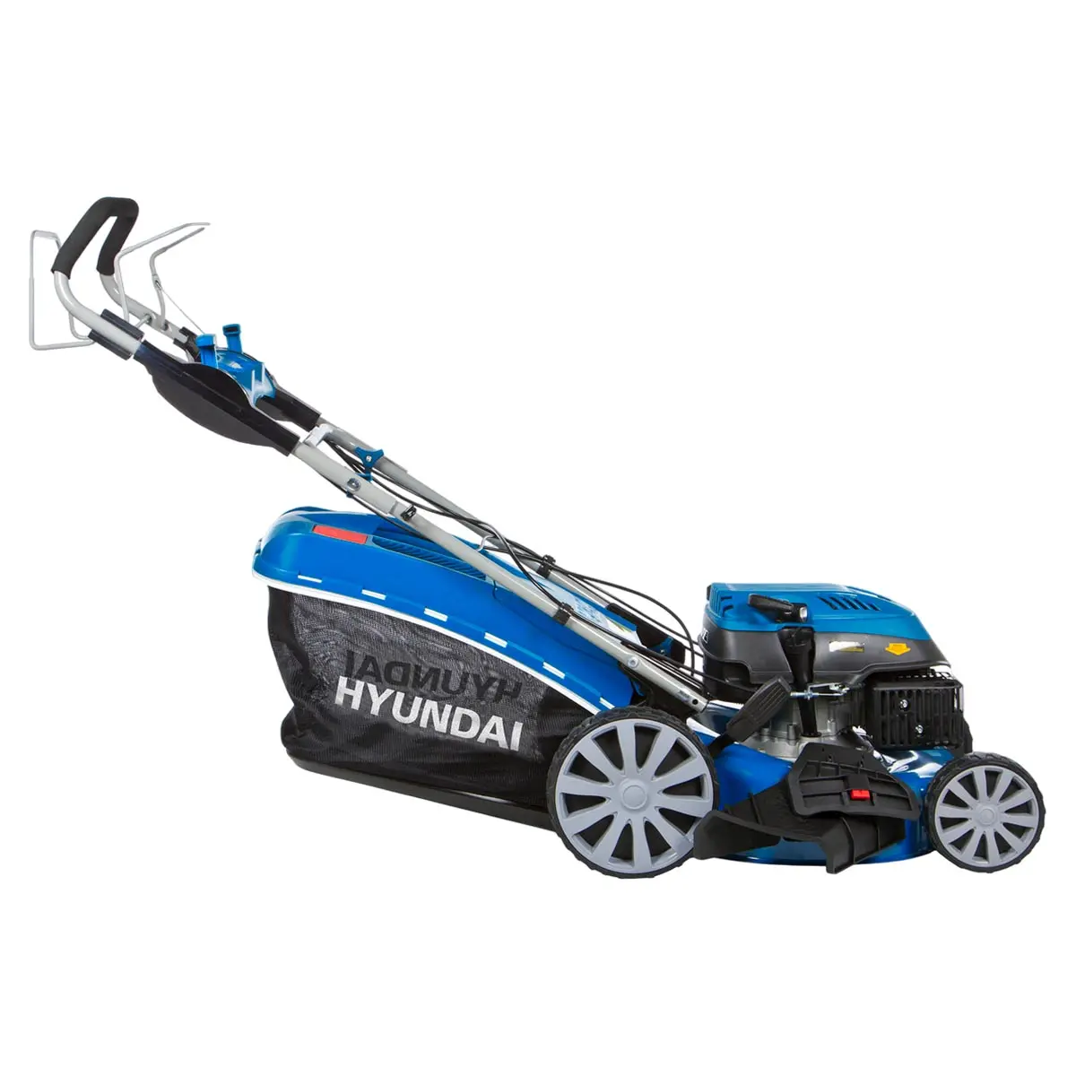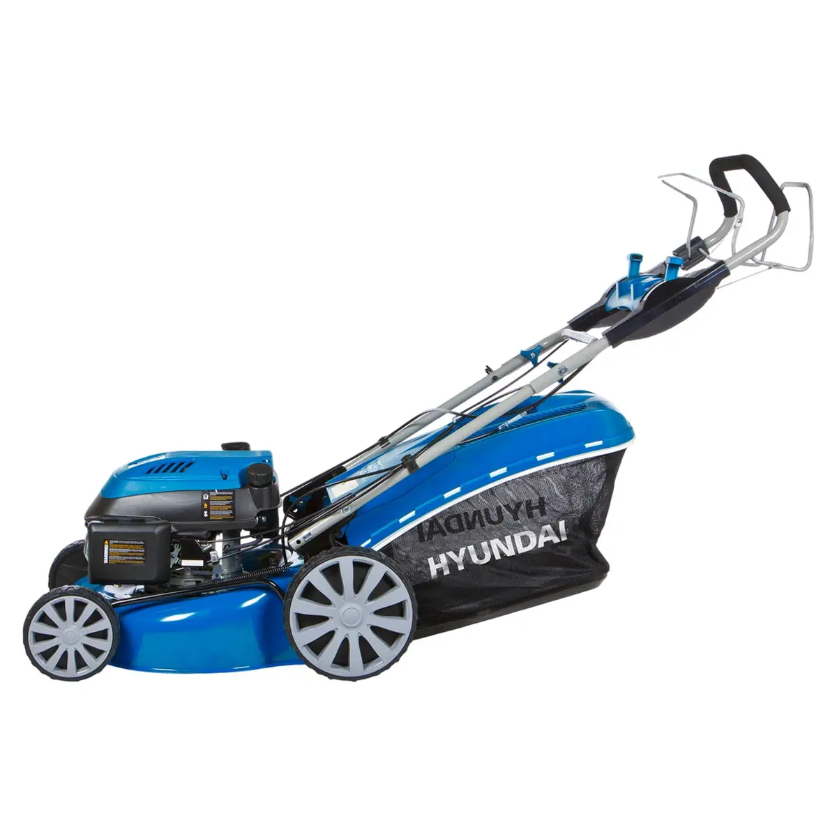 Бензиновая газонокосилка Hyundai L 4610S с двигателем мощностью 3.5 л. с. позволяет быстро получить ровный и аккуратный газон даже на большой территории. Главное преимущество модели заключается в том, что косилка с приводом на задние колеса самостоятельно едет вперед - ее не нужно толкать, прикладывая усилия, достаточно просто задавать направление.