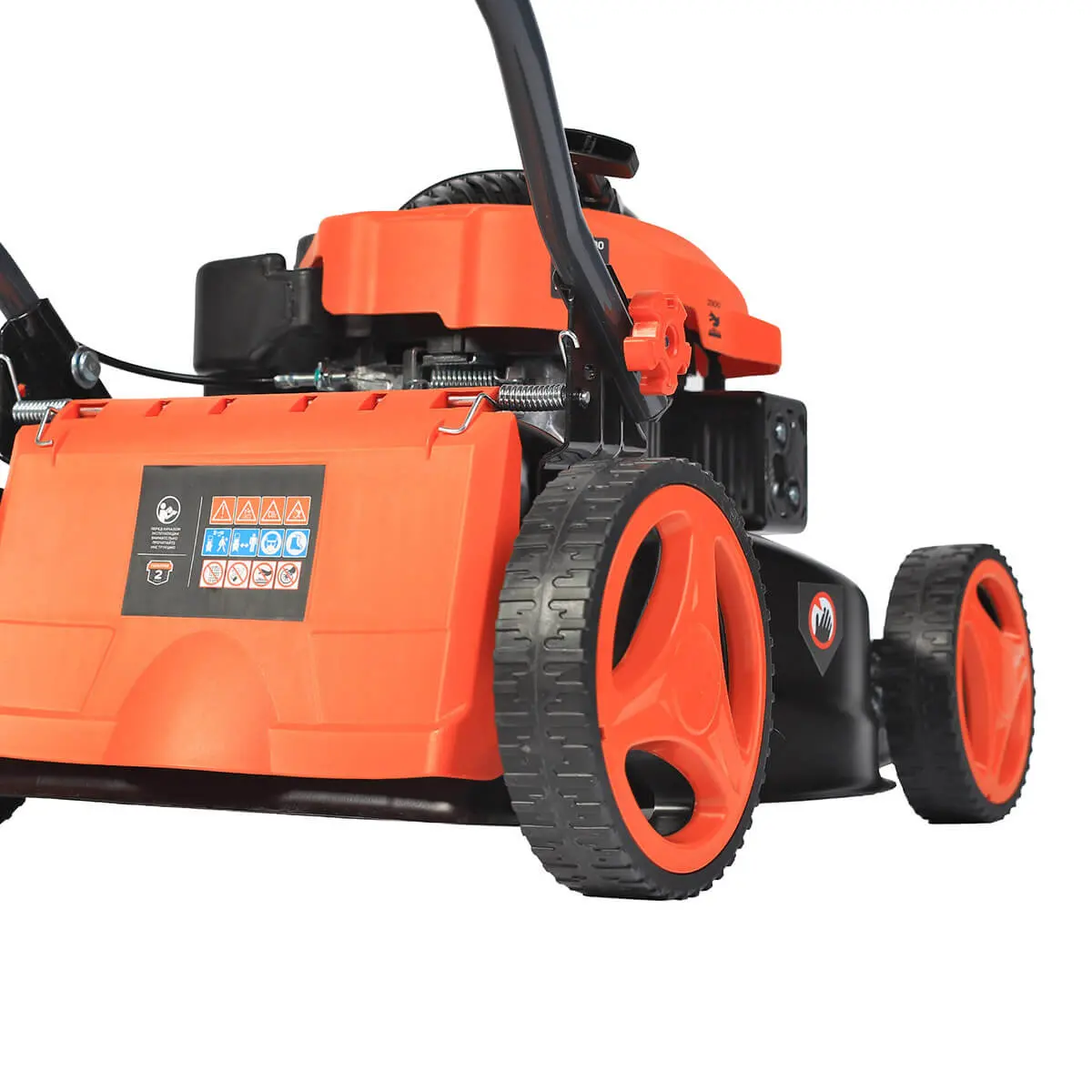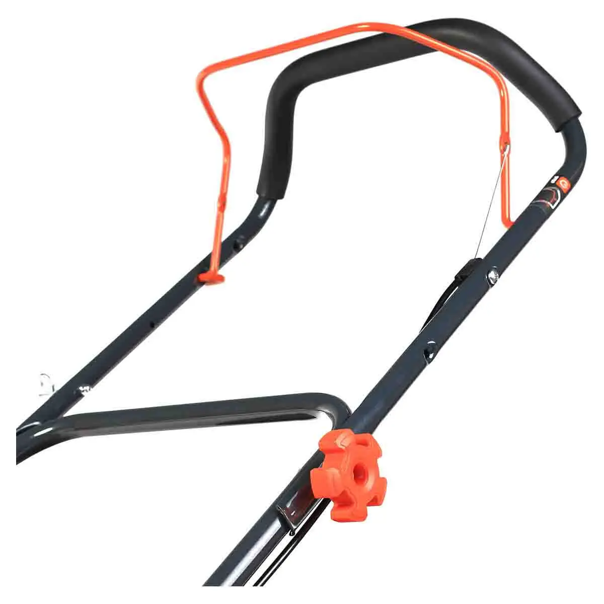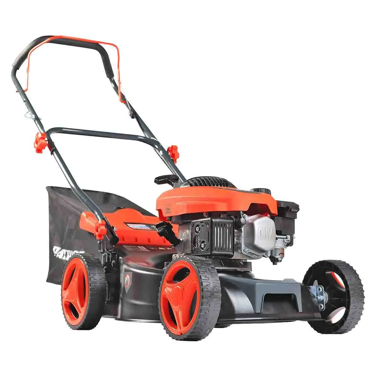 Для вашего удобства техника оснащена складной рукояткой, что делает ее компактной и удобной для хранения и транспортировки. Благодаря съемному травосборнику вместимостью 45 литров, вы можете собирать траву без необходимости частой остановки и очистки контейнера.