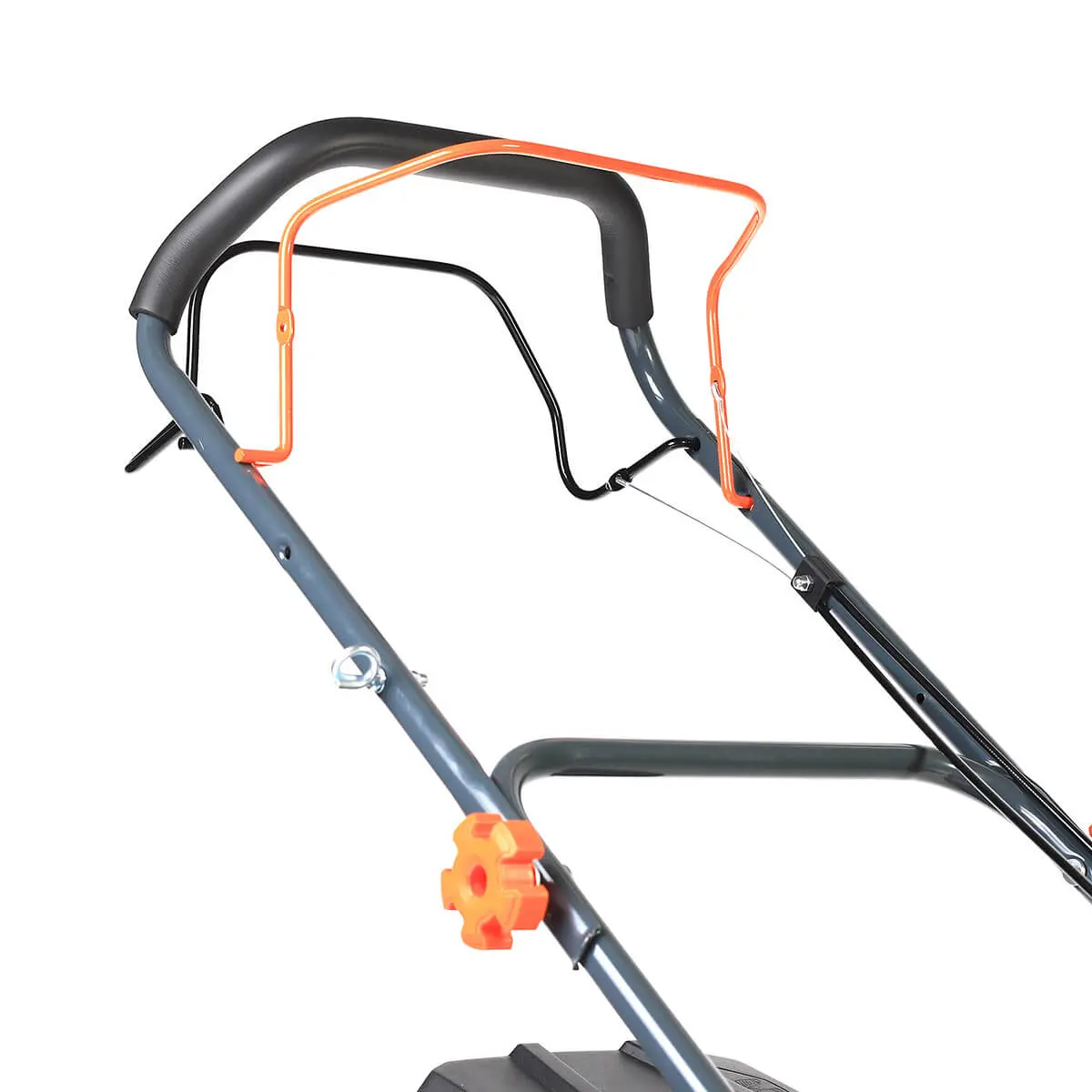 Вы можете сложить ручку во время хранения или перевозки, что позволяет сэкономить место. Также можно снять травосборник, чтобы газонокосилка занимала минимум места.