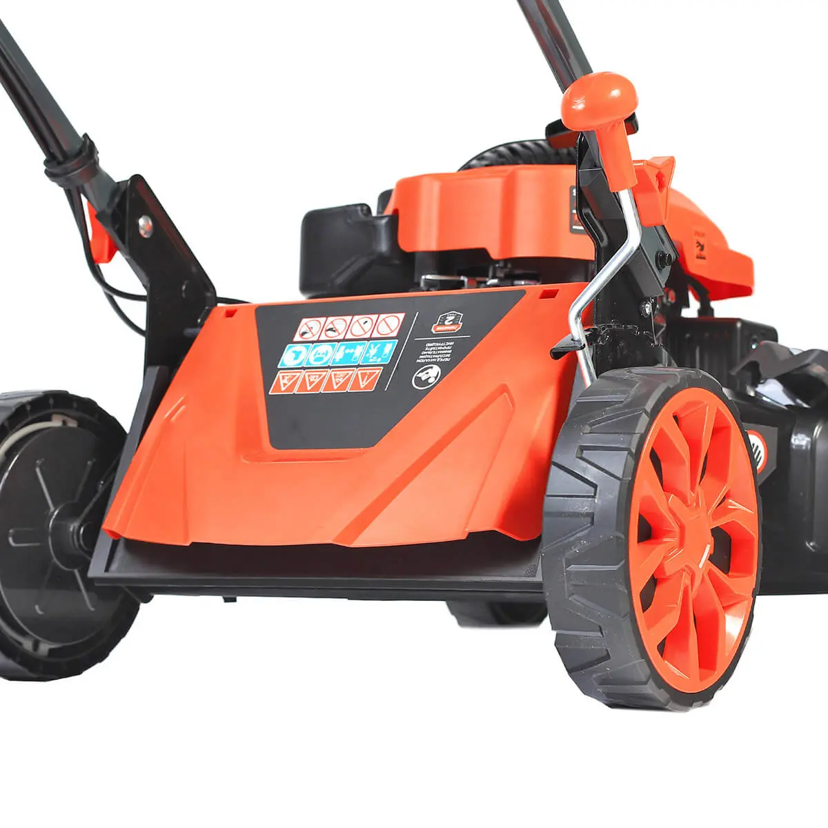 Большой объем бака для горючего вместимостью 1,2 литра обеспечивает продолжительную работу без необходимости частой заправки. А вместительный травосборник объемом 55 литров позволяет собирать скошенную траву без необходимости частого опустошения.