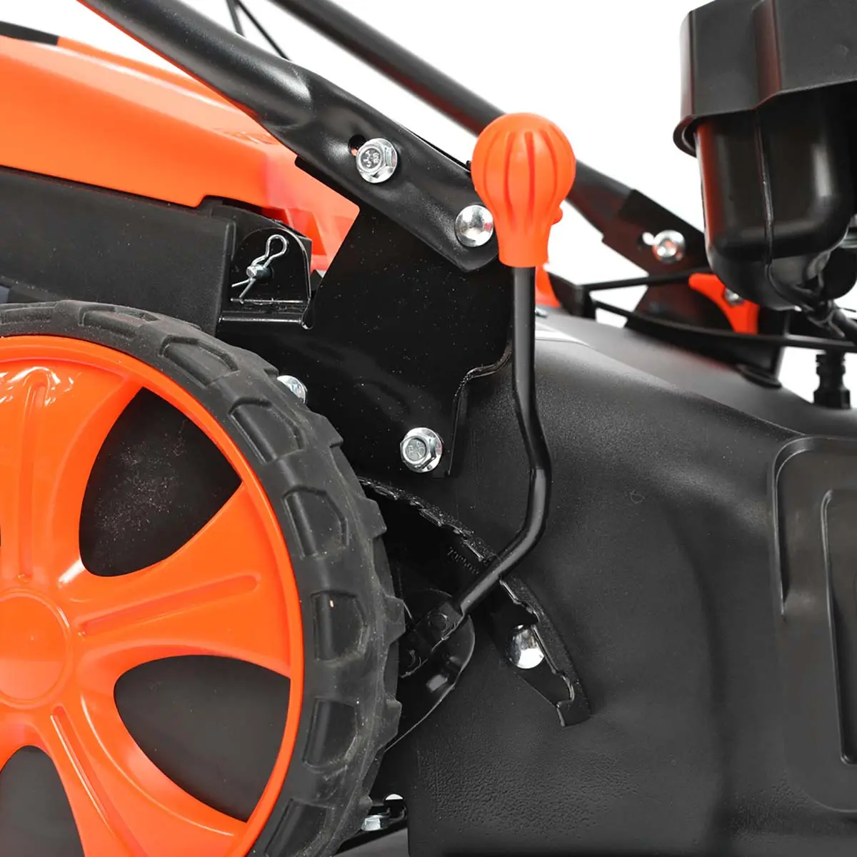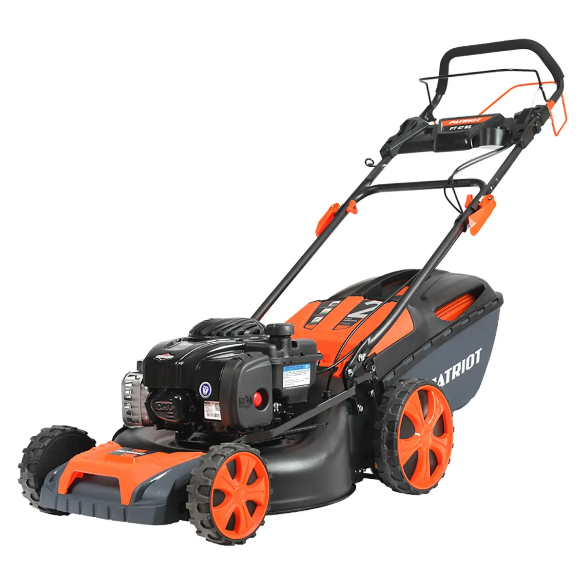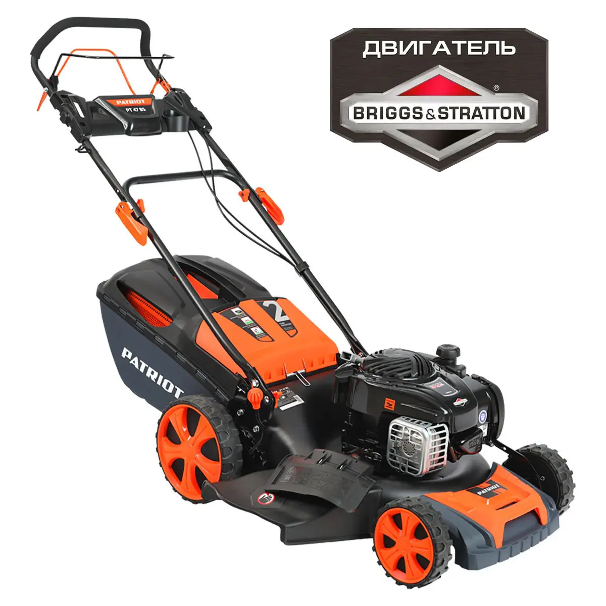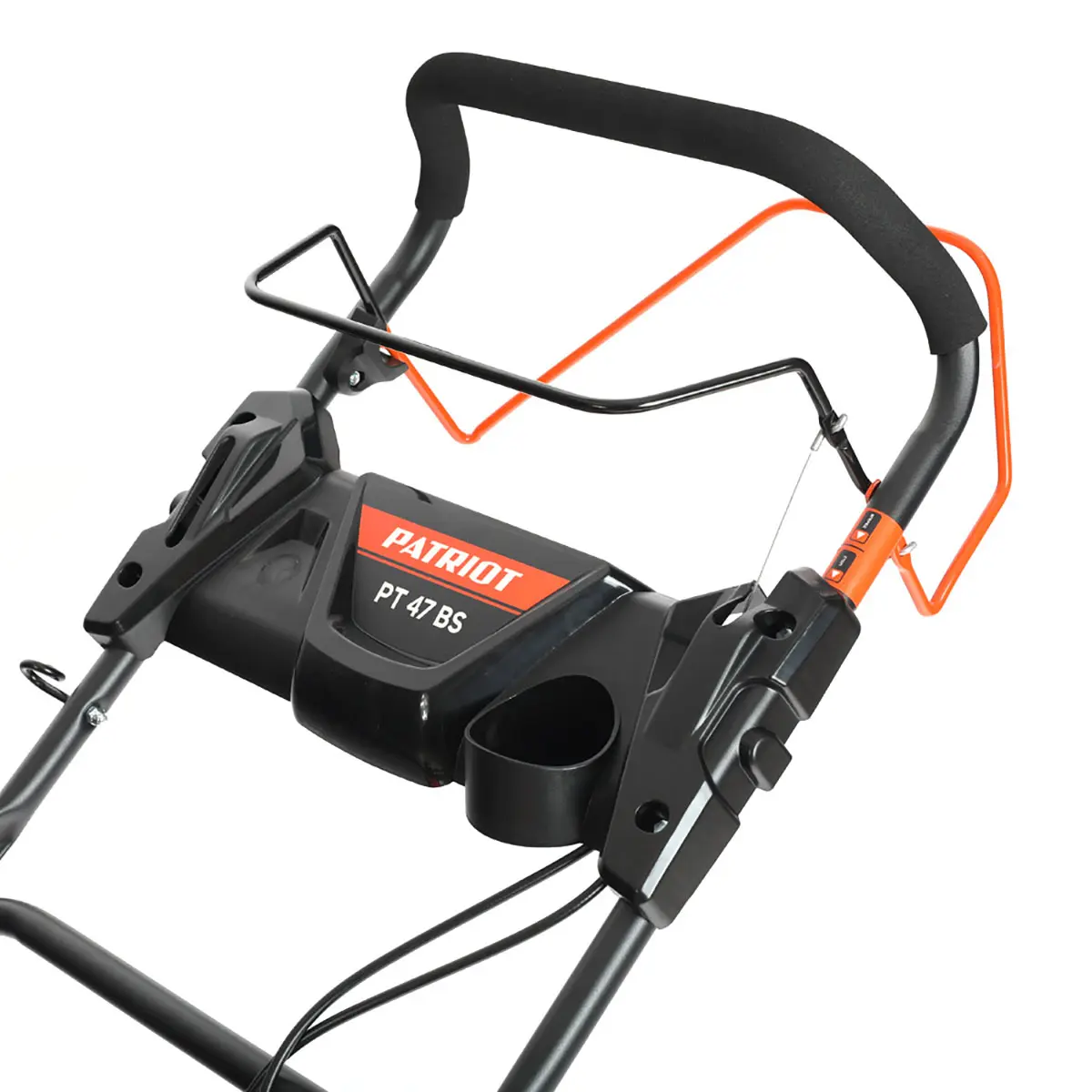 Привод на задние колеса позволяет Patriot PT 47BS двигаться самостоятельно, вам лишь нужно задать направление. Остановить движение колес и вращение ножа можно в одно мгновение - оба рычага выведены на основную рукоять.