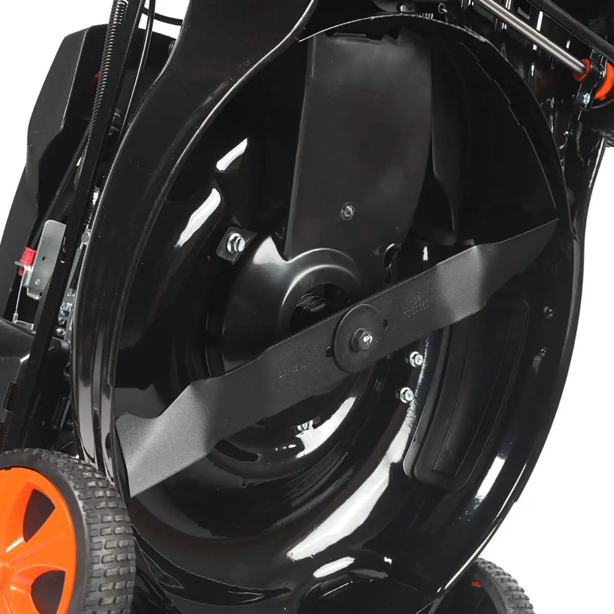 Привод на задние колеса избавляет вас от необходимости толкать косилку. Машина движется самостоятельно, вам нужно лишь задать и контролировать направление. При необходимости можно мгновенно остановить движение колес и вращение ножа, так как оба рычага выведены на основную рукоять.
