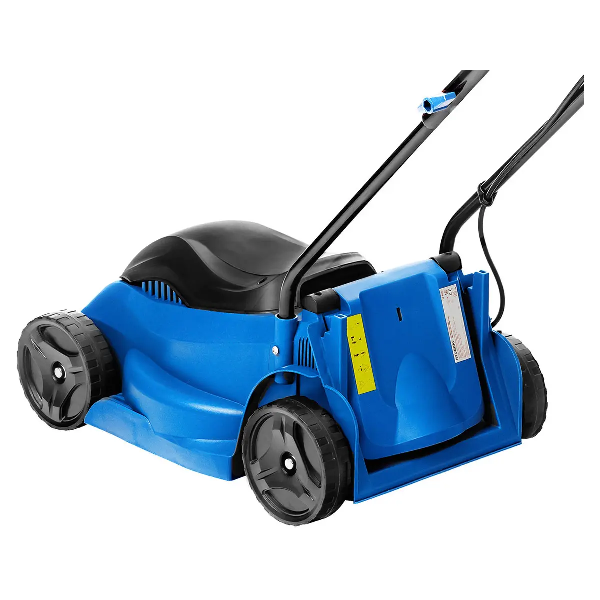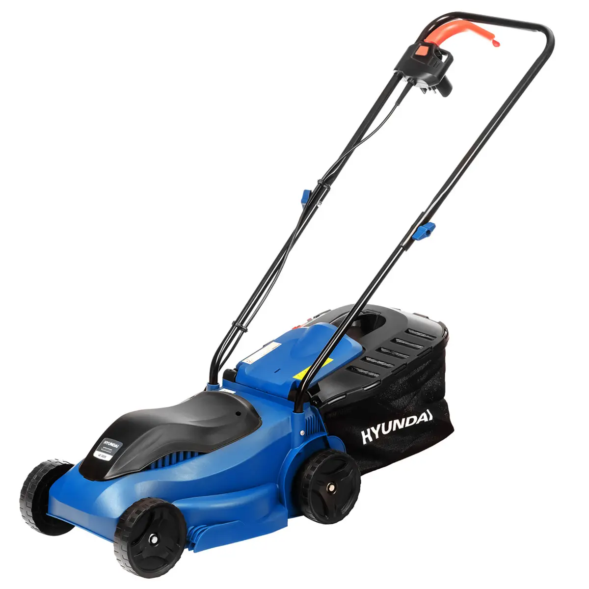 Электрическая газонокосилка Hyundai LE 3220 мощностью 1100 Вт - это доступное оборудование для ухода за газоном на приусадебном участке. Ширина кошения 32 см делает эту модель подходящим выбором для обработки территории размеров 5-6 соток.