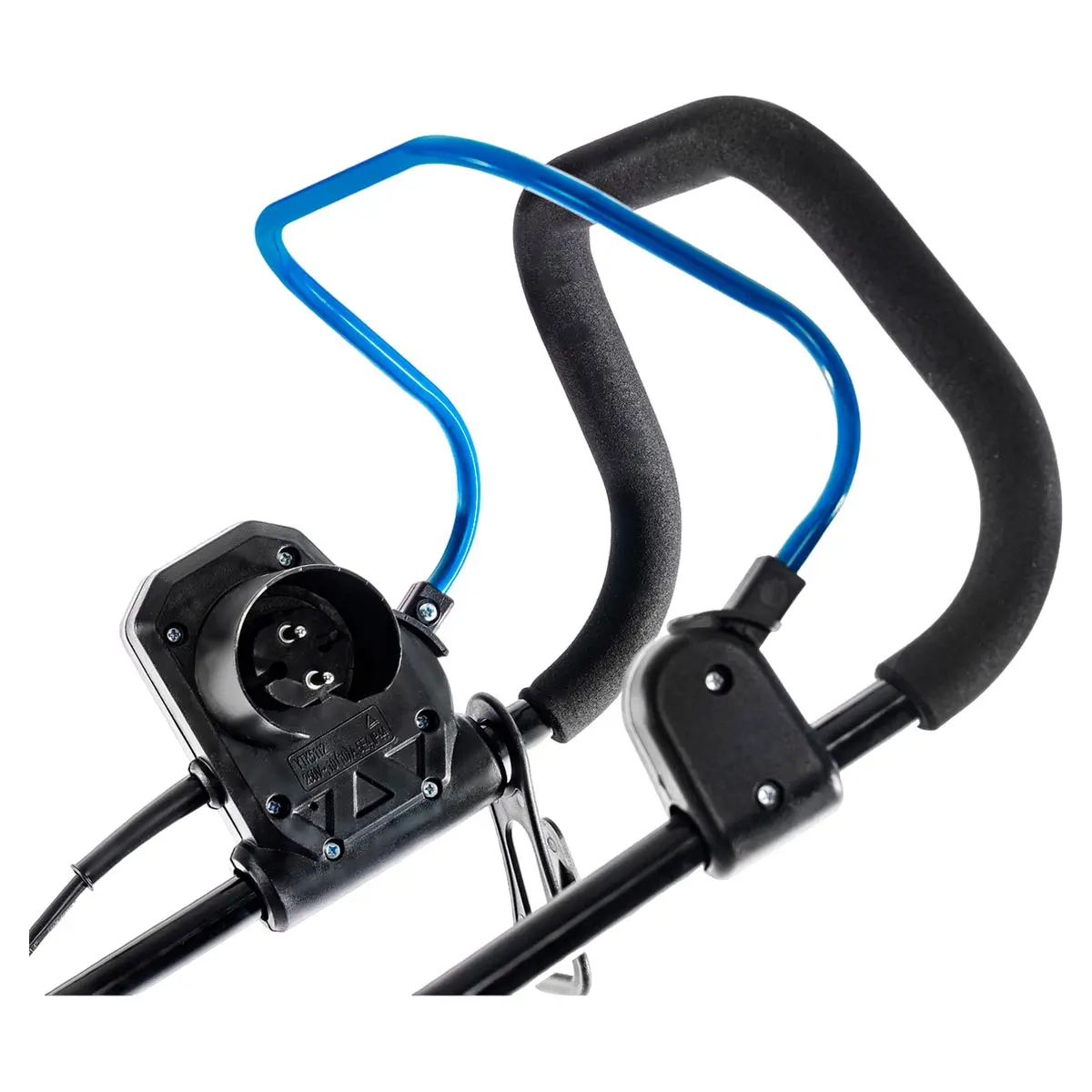 - Высоту кошения можно быстро отрегулировать центральным рычагом в пределах от 20 до 70 мм.