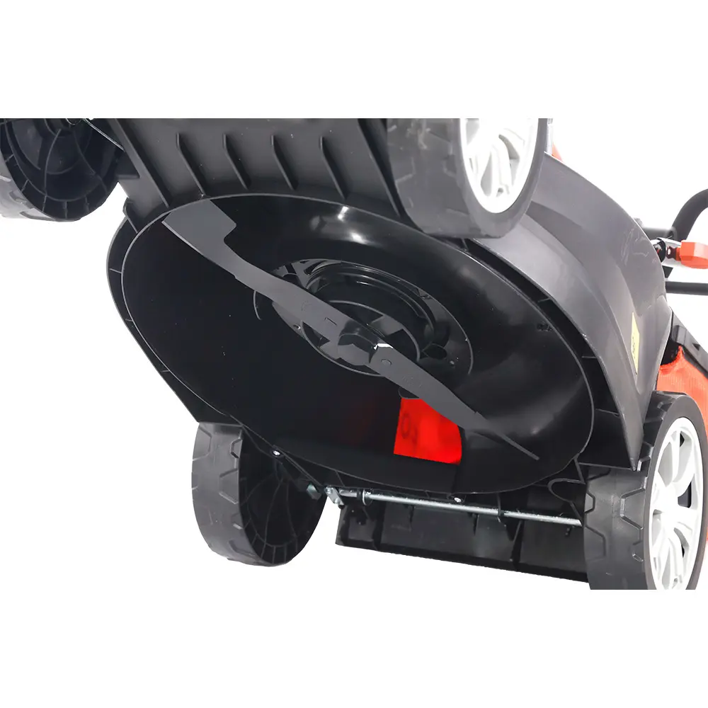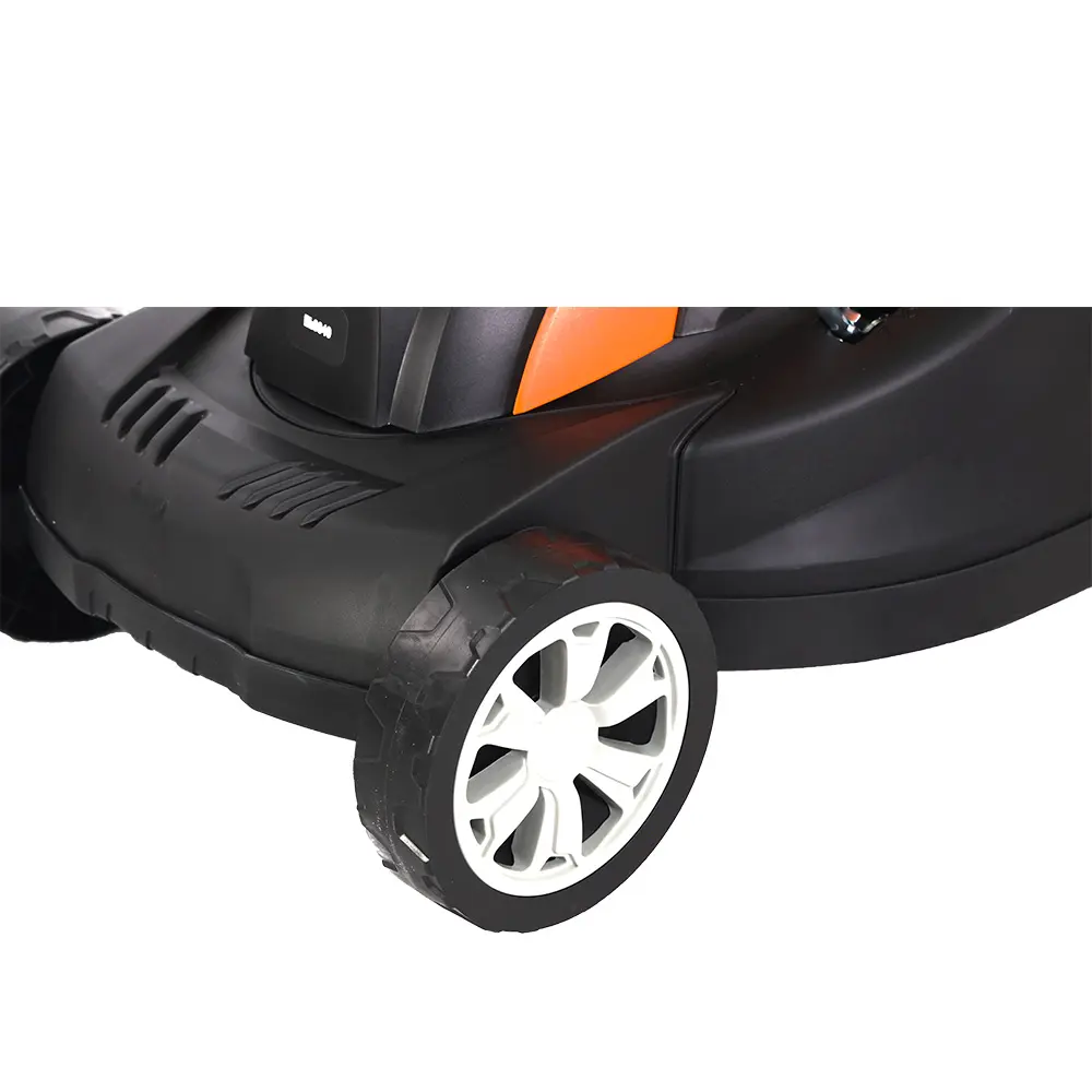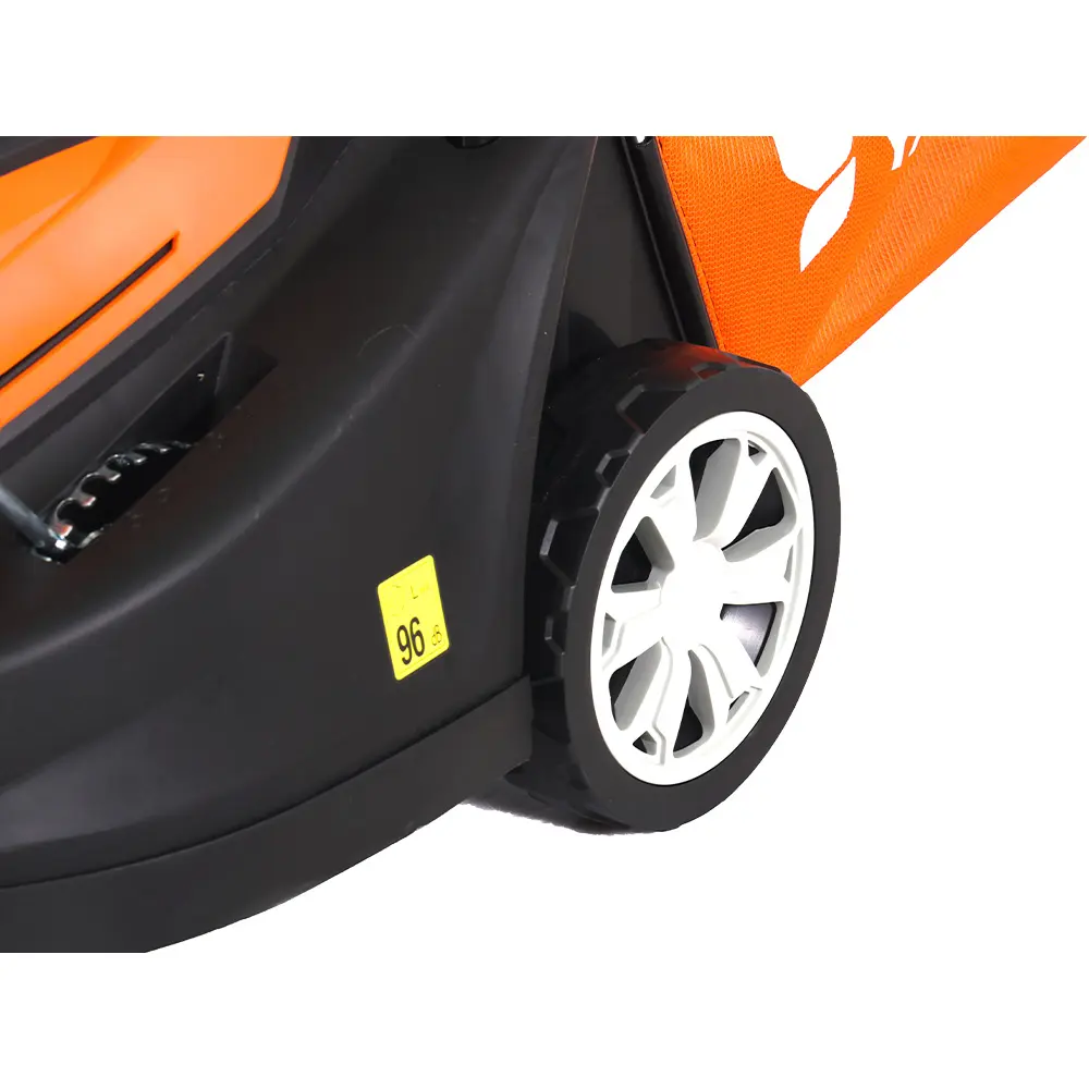 Благодаря эргономичной конструкции корпуса агрегата, небольшому весу и ширине режущей деки в 38 см электрическая косилка YARD FOX EL3840 легко передвигается даже по узким дорожкам и проходам на участке. Задние колеса увеличенного диаметра (20 см) позволяют уверенно справляться с обработкой наклонных участков и областей ландшафта с перепадом высоты.