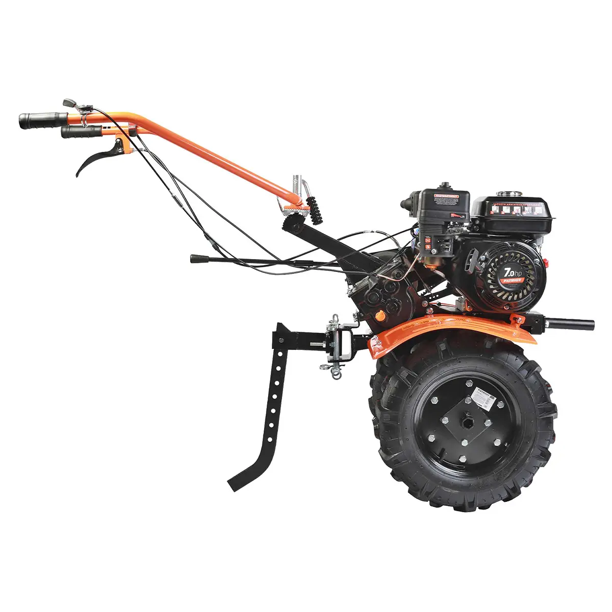 Пониженная первая передача повышает проходимость оборудования на сложных грунтах и участках. Крылья на корпусе защищают пользователя и двигатель от разлетающейся земли и пыли. Стальная рама, алюминиевый редуктор и мощный 4-тактный двигатель гарантируют надежность и производительность.