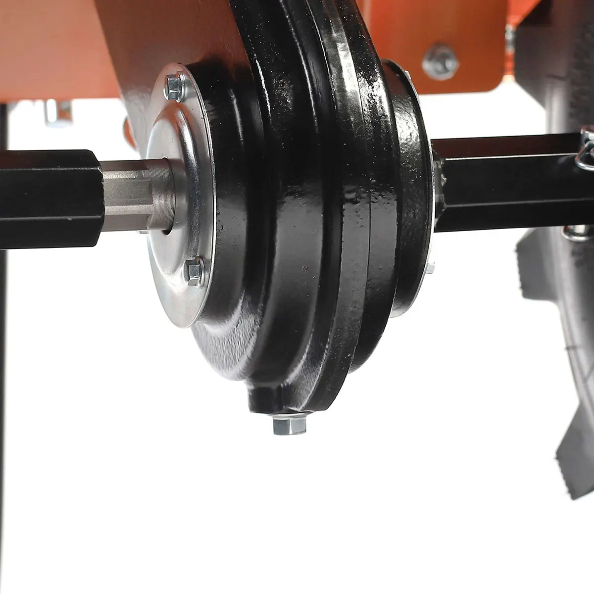 Техника комплектуется фрезами диаметром 32 см, которые эффективно справляются с обработкой тяжелого и уплотненного грунта. Они надежно закреплены на прочной раме, что обеспечивает долговечность и надежность работы.