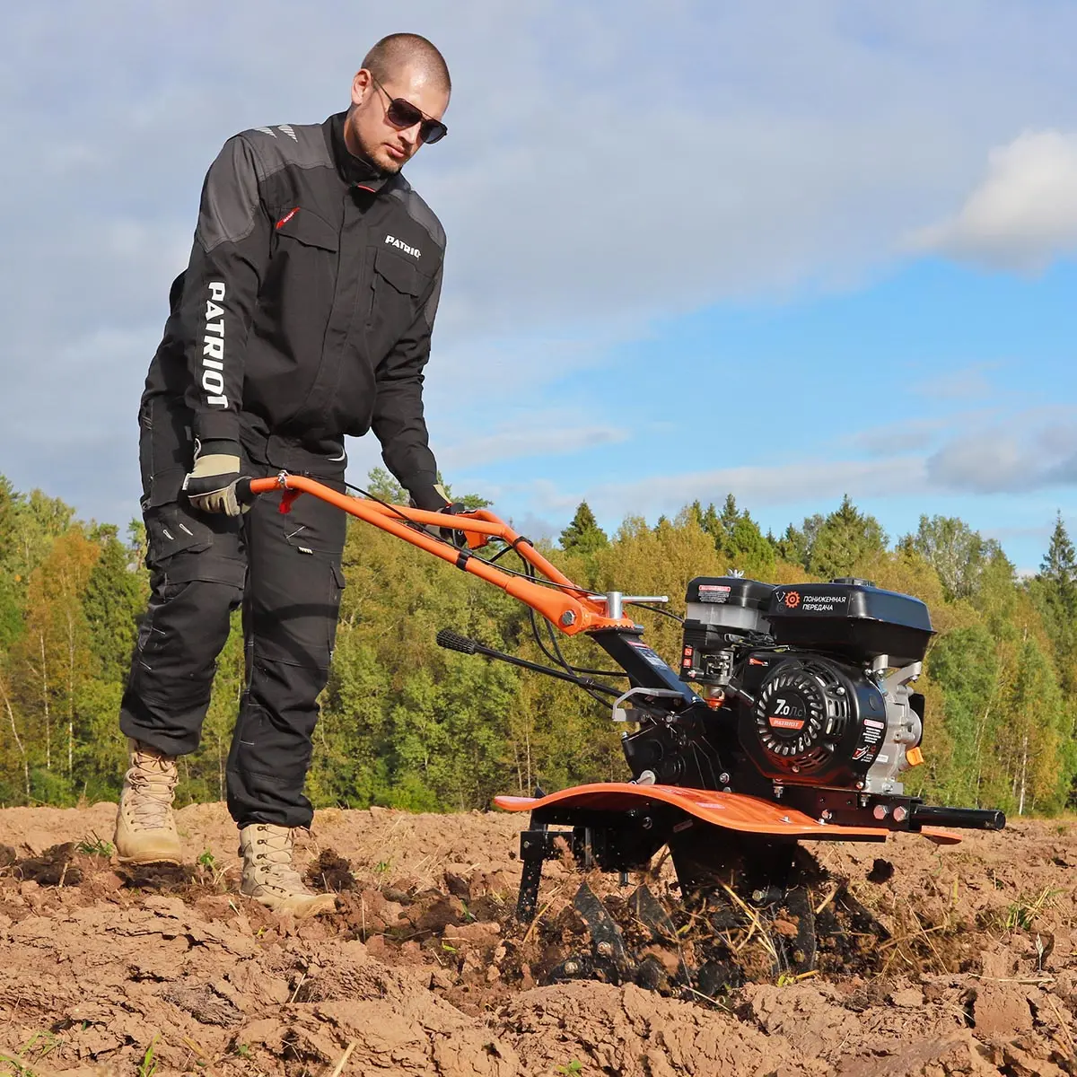 Бензиновый мотоблок Patriot Владимир М - идеальное решение для тех, кто ищет надежный и эффективный инструмент для обработки твердых почв. Сочетая в себе мощный четырехтактный двигатель с воздушным охлаждением и цепной редуктор, этот агрегат способен справиться с самыми сложными задачами.