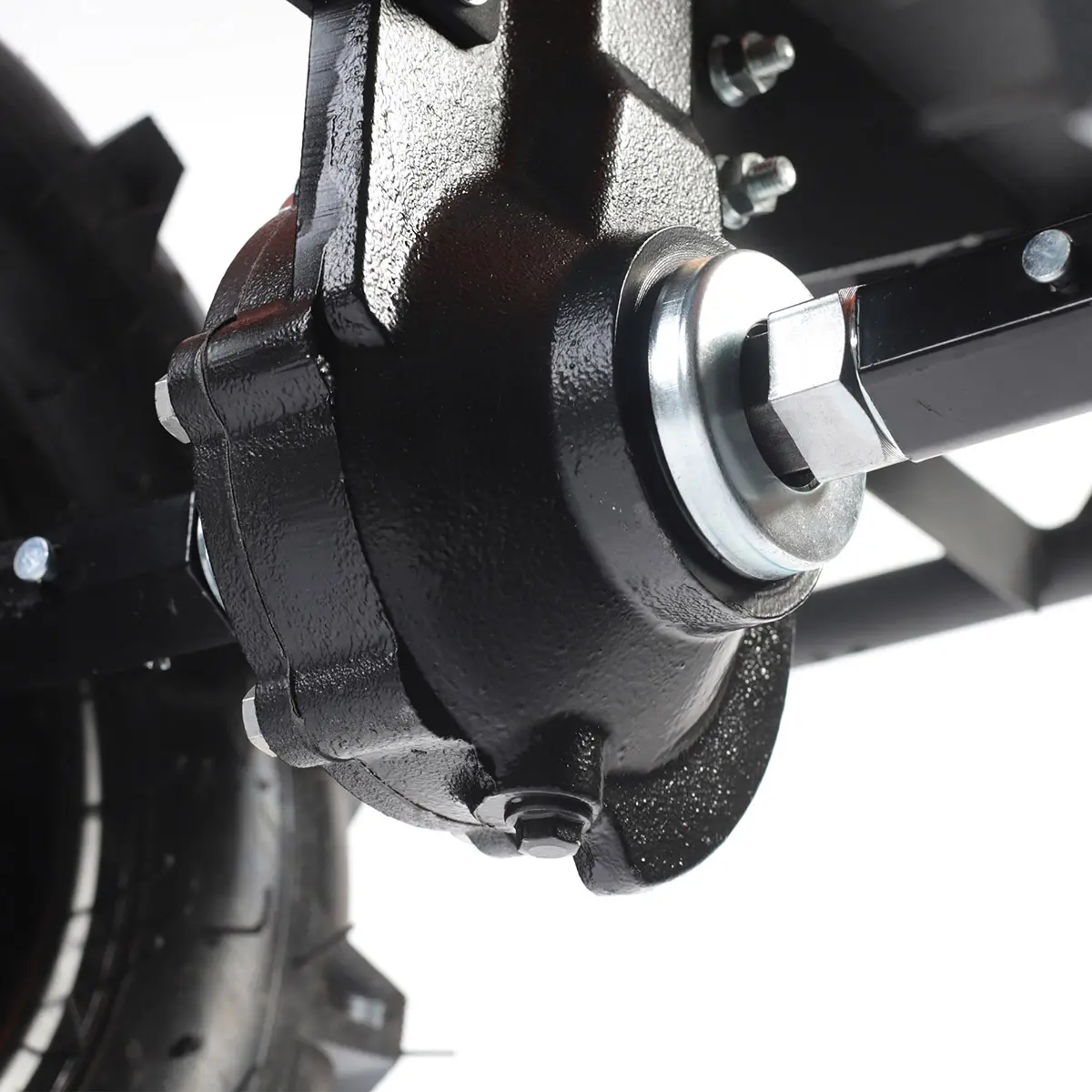 Для расширения функциональности модели предусмотрено дооснащение. Вы можете докупить различное оборудование, начиная от роторной косилки и плуга, и заканчивая тележкой и картофелевыкапывателем. Глубина обработки зависит от положения сошника и может составлять от 170 до 340 мм.