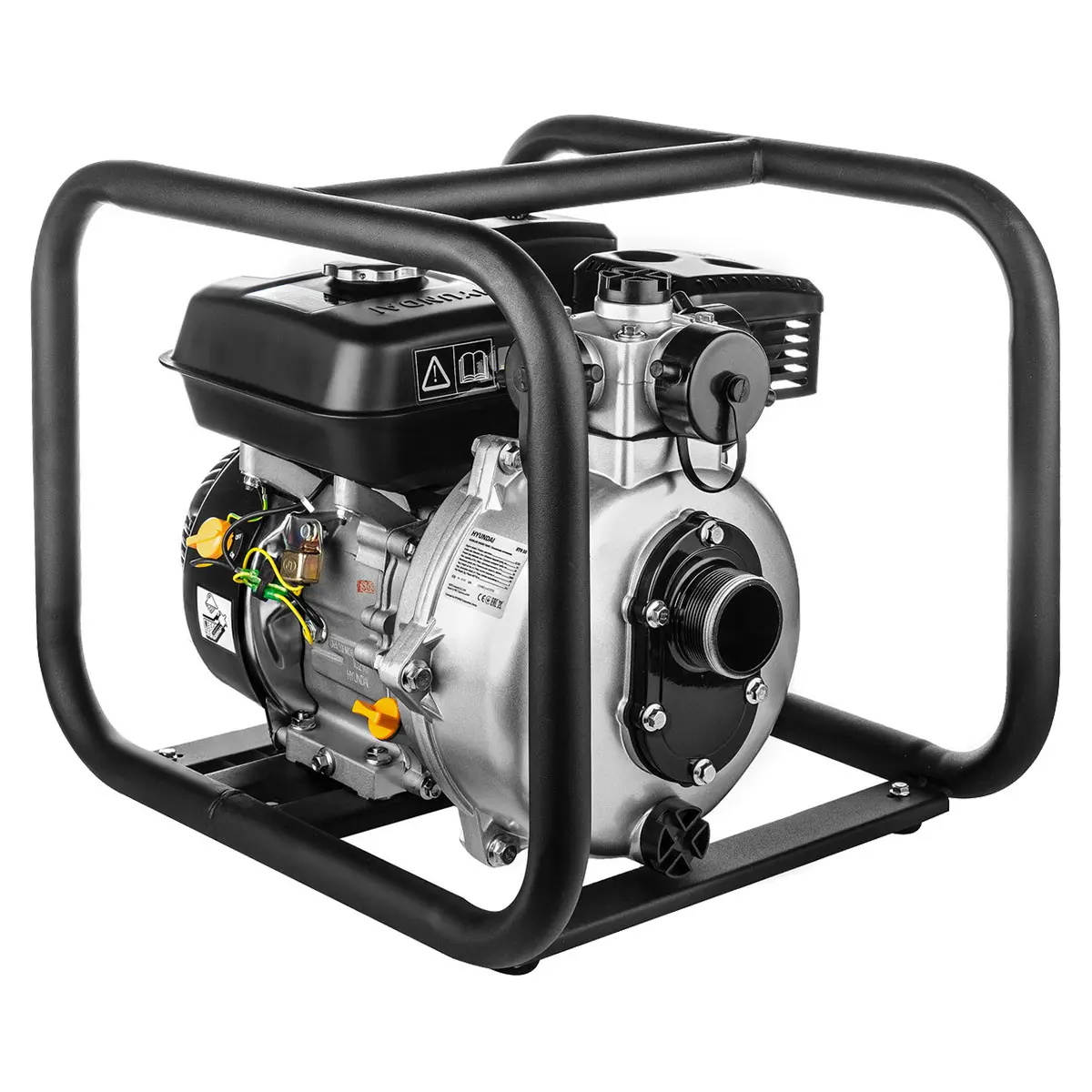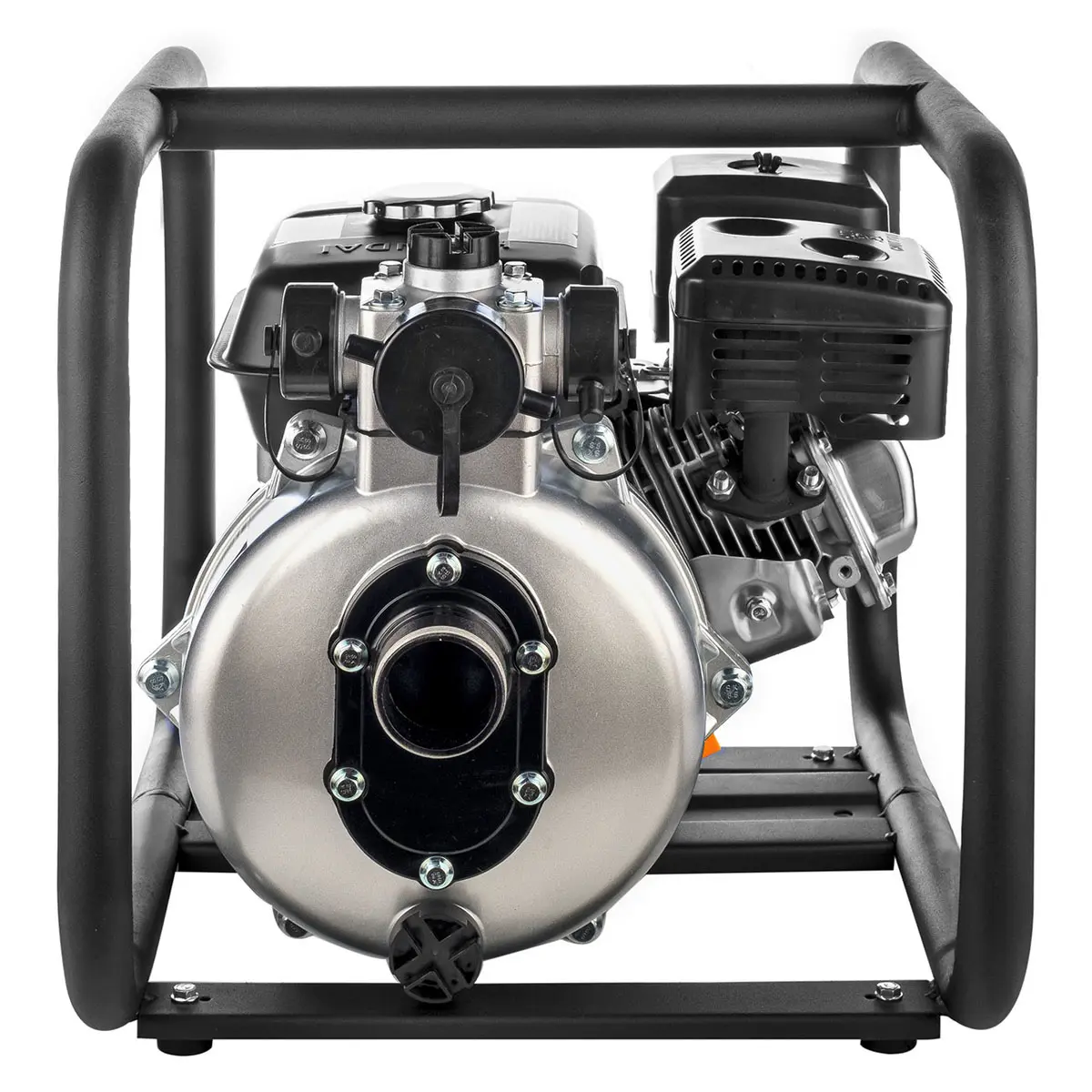Стальная рама защищает насос и двигатель от повреждений при транспортировке и эксплуатации, а также служит устойчивой опорой на твердых поверхностях и грунте. Верхняя перекладина выступает в роли широкой ручки, благодаря чему помпу удобно переносить вдвоем.