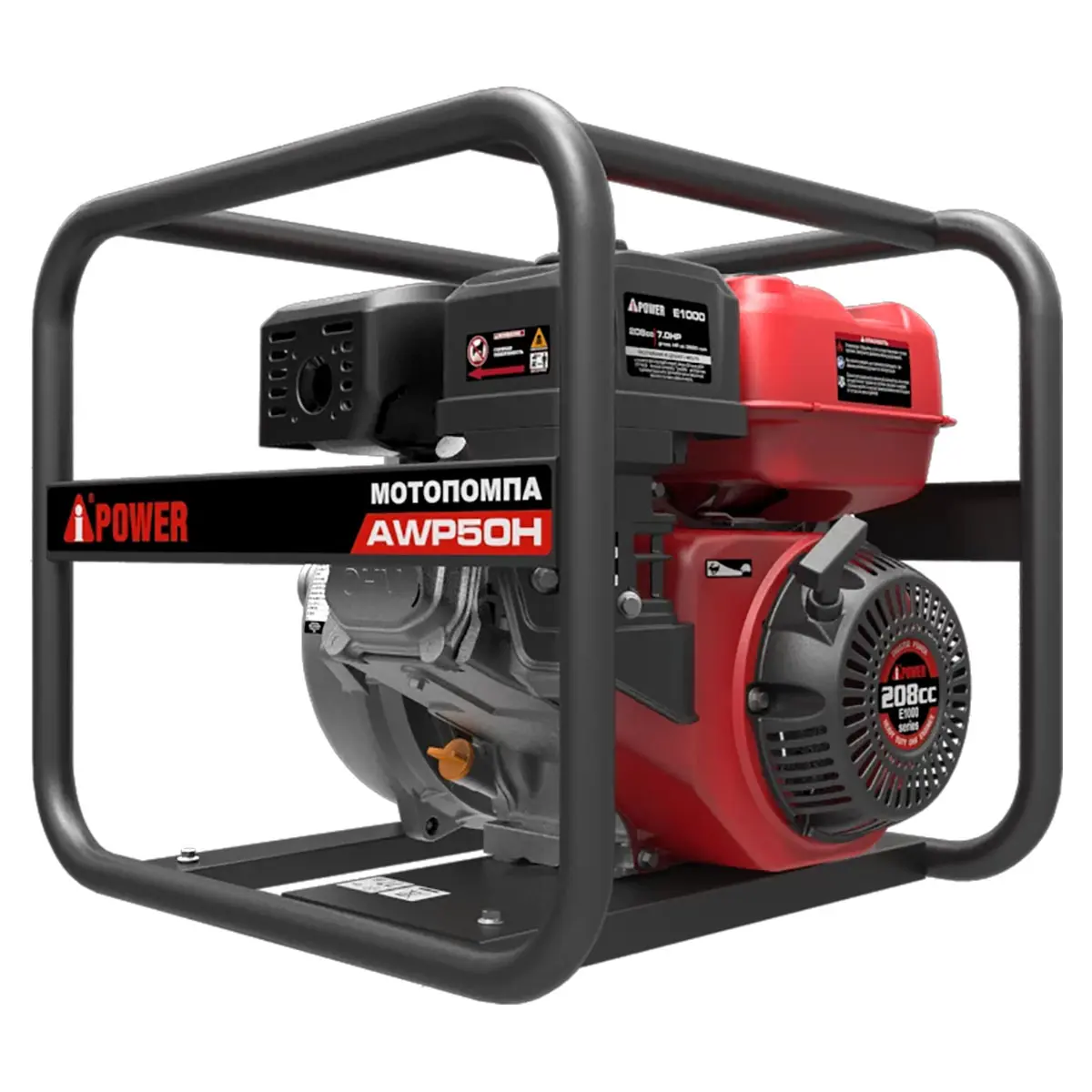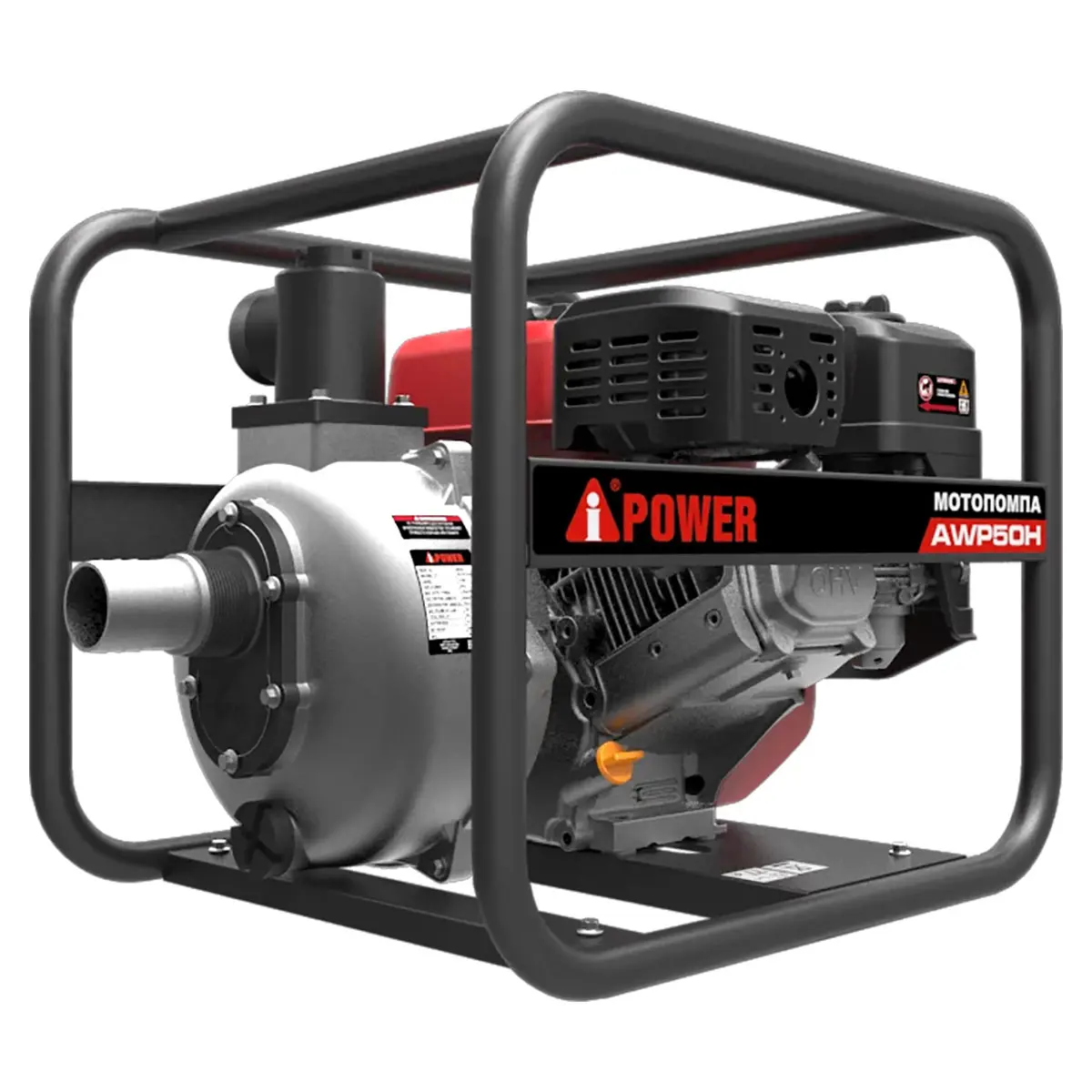 Одно из преимуществ модели A-iPower AWP50H - ее длительное время работы. Двигатель мотопомпы - 4-х тактный OHV-двигатель с объемом бака 3,6 литра, который расходует всего 1,4 литра бензина в час работы. Благодаря воздушному охлаждению, мотопомпа не перегревается даже при интенсивной нагрузке. При полной загрузке агрегата она может работать непрерывно до 2,2 часов. Это особенно важно в ситуациях, когда требуется продолжительная откачка воды.
