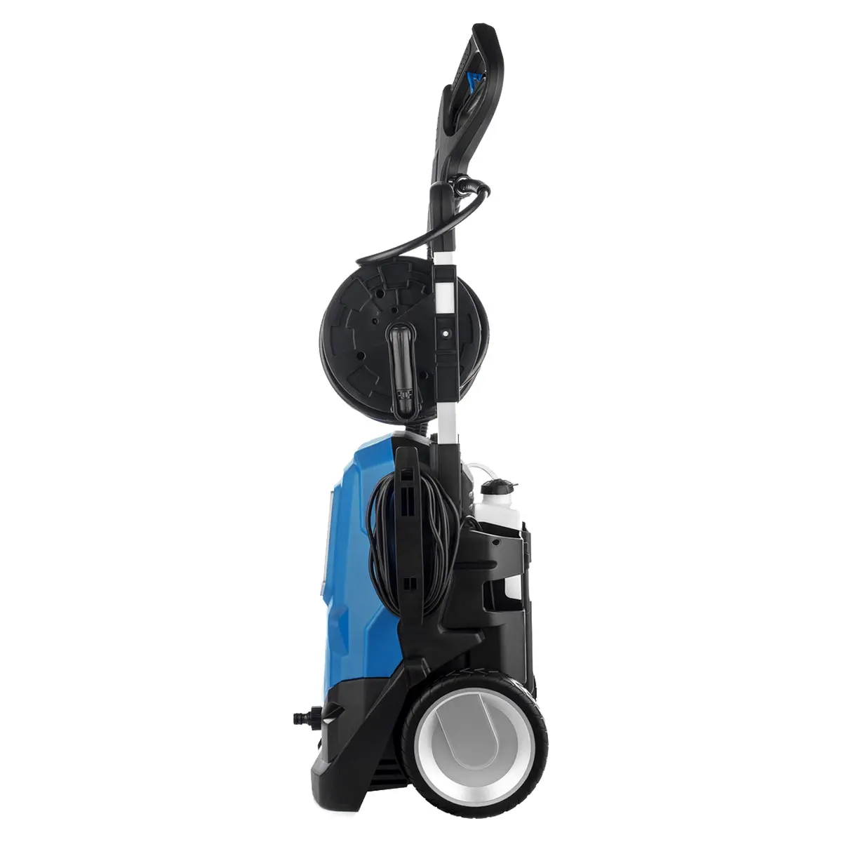 В минимойке установлен электромотор на 2000 Вт. Есть функция автоотключения, которая обеспечивает безопасные условия эксплуатации. Также имеется опция всасывания воды, позволяющая выполнять забор воды из любой емкости.