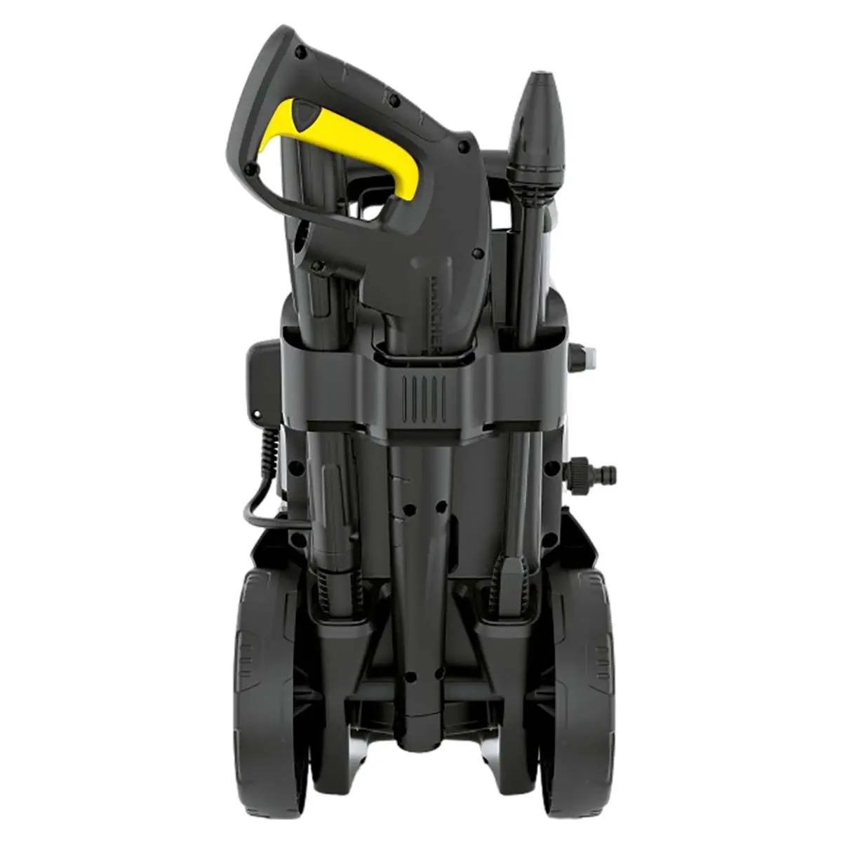 Одним из главных преимуществ модели является ее компактность. Ее можно удобно перевозить в багажнике легкового автомобиля и хранить даже в небольших помещениях. Инновационная концепция хранения гарантирует безопасность шланга высокого давления при транспортировке минимойки. Шланг аккуратно обматывается вокруг передней крышки и фиксируется прочной резиновой лентой, предотвращая его повреждение и повышая комфорт использования.