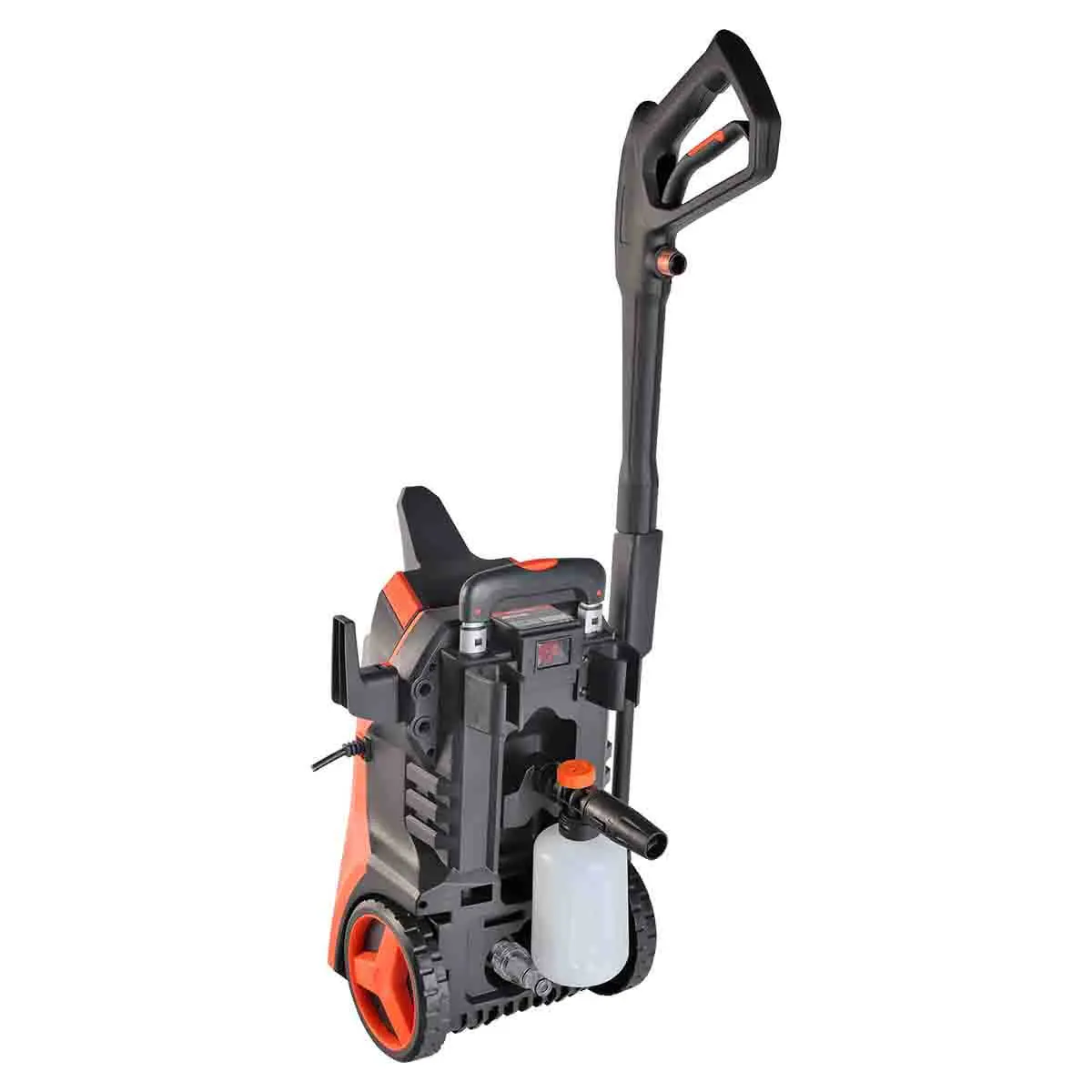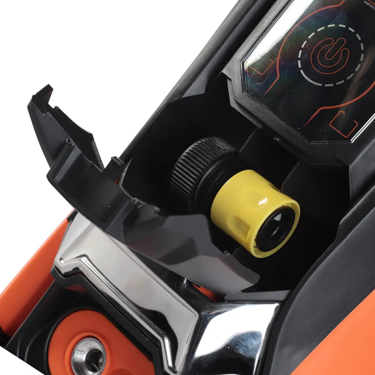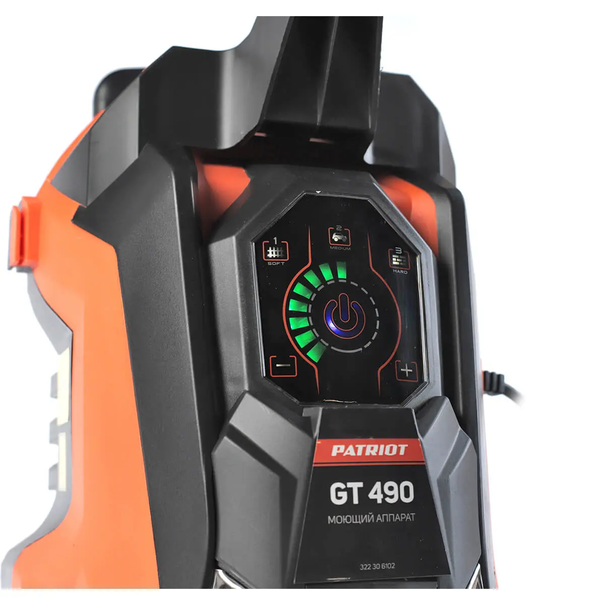 Данная модель оснащена электронным блоком управления, который регулирует основные параметры работы агрегата. Наличие сенсорного LCD дисплея позволяет удобно управлять мощностью мойки, выбирая для эксплуатации наиболее подходящее давление воды на выходе из пистолета.