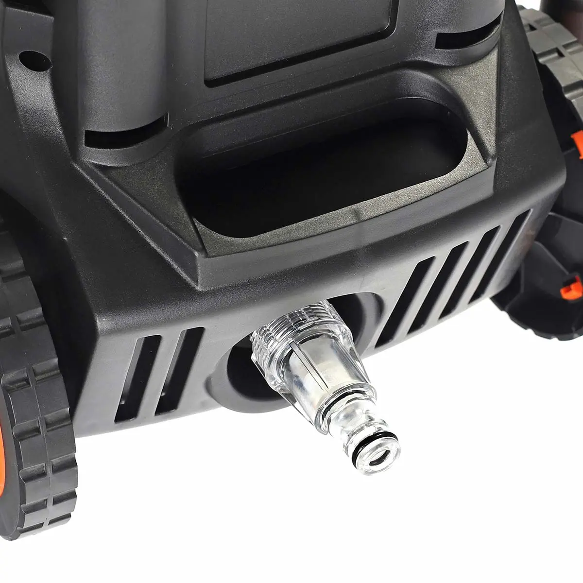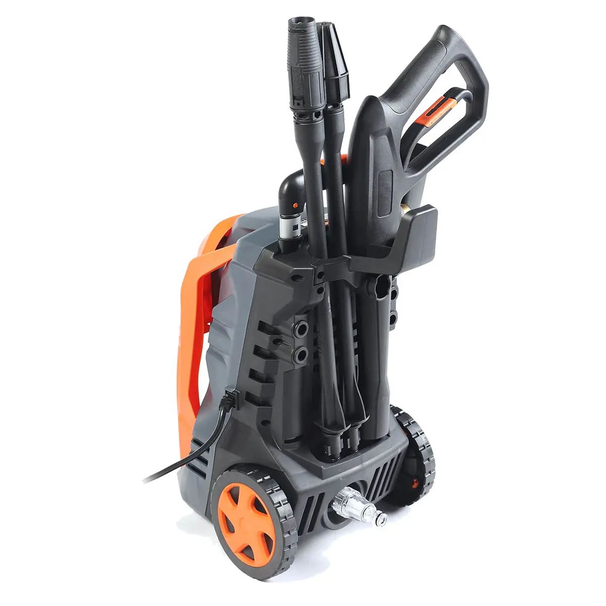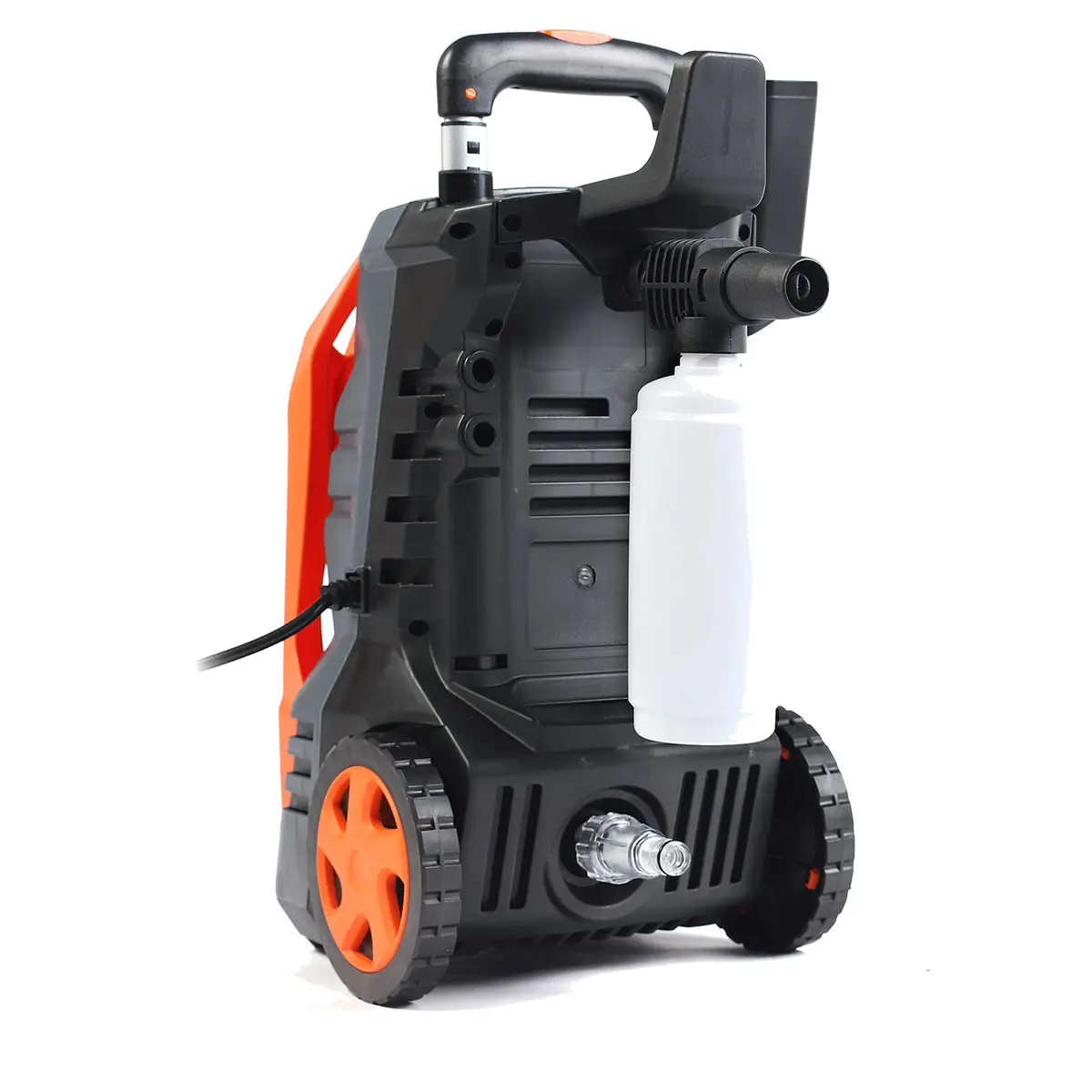 Корпус минимойки выполнен из высокопрочного пластика, устойчивого к высоким и низким температурам, а также внешнему воздействию. Работа оборудования осуществляется за счет электродвигателя мощностью 2,2 кВт с большим рабочим ресурсом и защитой от перегрева. Агрегат подключается к стандартной электросети 220 В. Электробезопасность эксплуатации обеспечивается для счет двойной изоляции токопроводящих элементов корпуса.