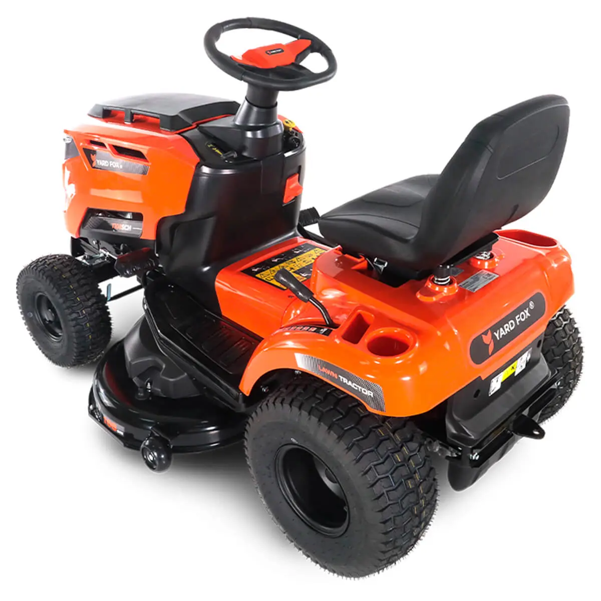 YARD FOX T 108SCH оснащен фаркопом, который значительно расширяет его функциональность. Это позволяет пользователям сцеплять различные аксессуары, такие как прицепы, плуги или другие садовые инструменты. Таким образом, трактор может выполнять не только функции кошения, но и множество других задач, что делает его универсальным помощником в саду и на даче.