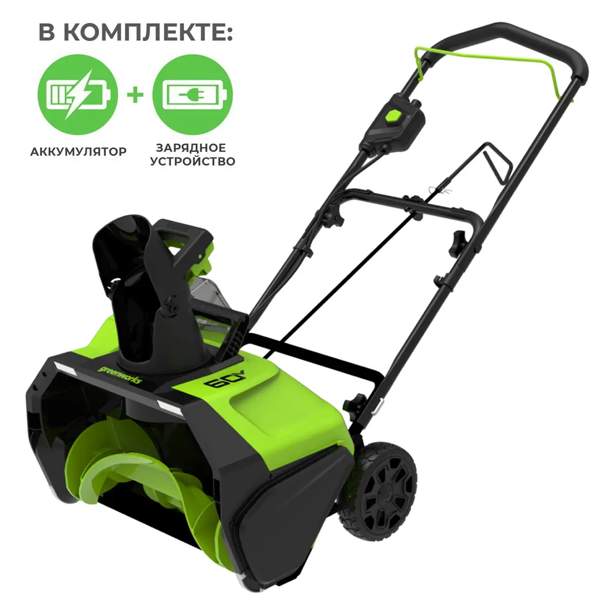 Снегоуборщик аккумуляторный ручной Greenworks GD60PST бесщеточный, 60V с 2хАКБ 5 Ач + ЗУ 10А двойное