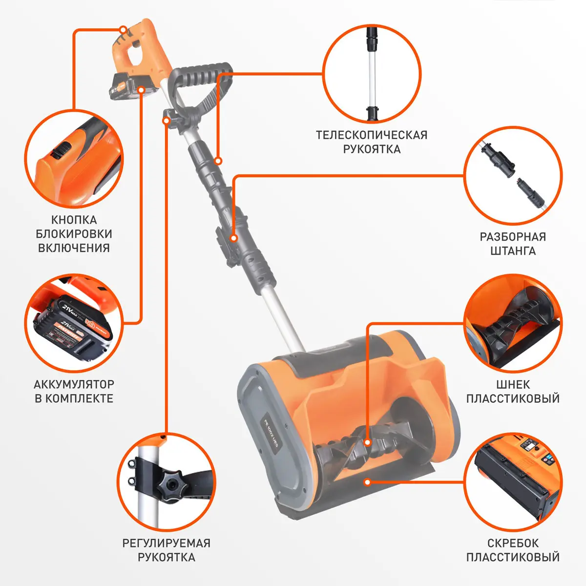 Легкий вес и компактность делают снегоочиститель удобным для хранения и транспортировки. Благодаря компактным размерам, вы сможете легко убрать его в небольшой шкаф или даже в багажник автомобиля. Теперь вы можете брать снегоуборщик с собой в любое место, где он вам может понадобиться.