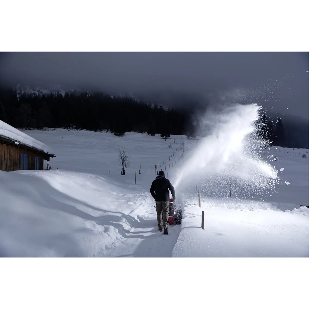 - Поворот желоба на 190 градусов обеспечивает возможность выброса снега в любом направлении.