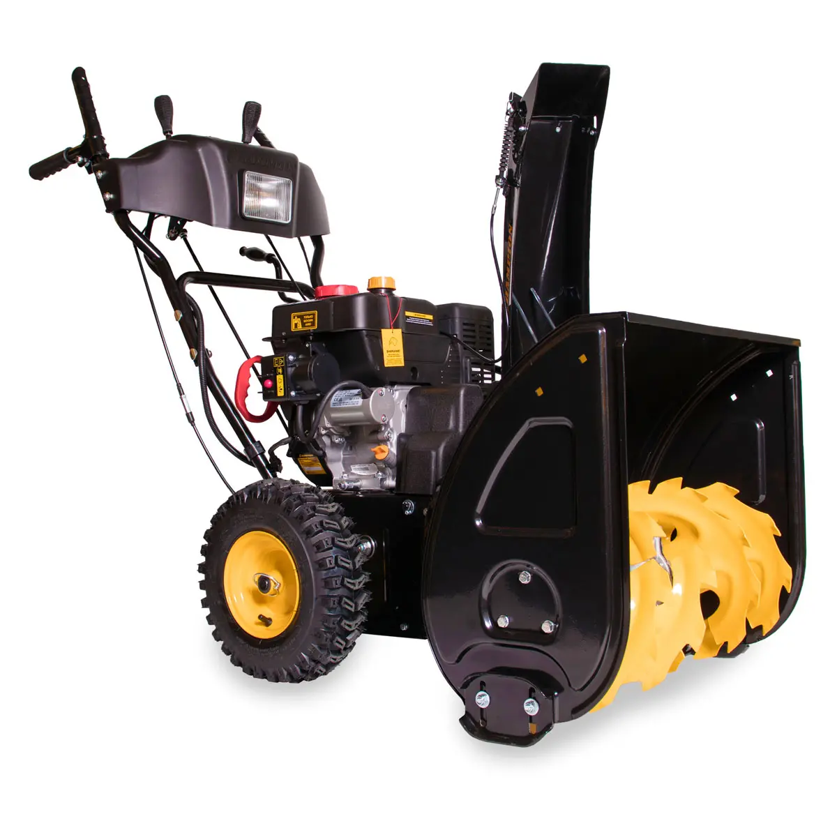 С шириной захвата до 61 см и высотой до 51 см, шнек способен справиться даже с массивными снежными покровами. Стальной шнек размельчает ледяную корку и слежавшиеся снежные массы, а мощная крыльчатка отбрасывает рыхлый снег на расстояние до 14 метров. Высота и дальность выброса снега регулируются вручную.