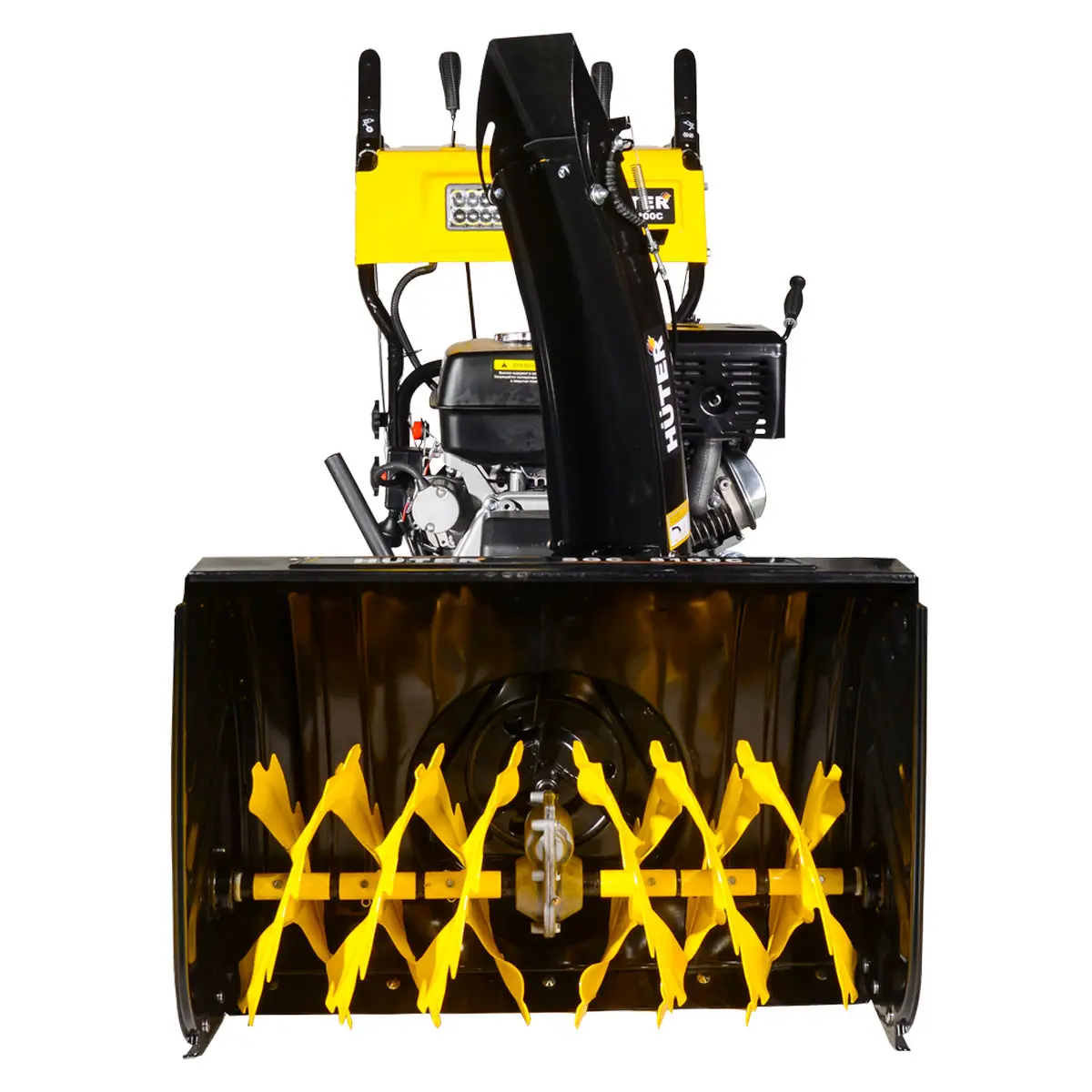 Зубчатый металлический шнек снегоуборочной машины Huter SGC 8100C перемалывает даже заледеневшие сугробы и не ломается при больших нагрузках, благодаря срезным болтам. Вы можете быть уверены в надежности и долговечности этого инструмента.