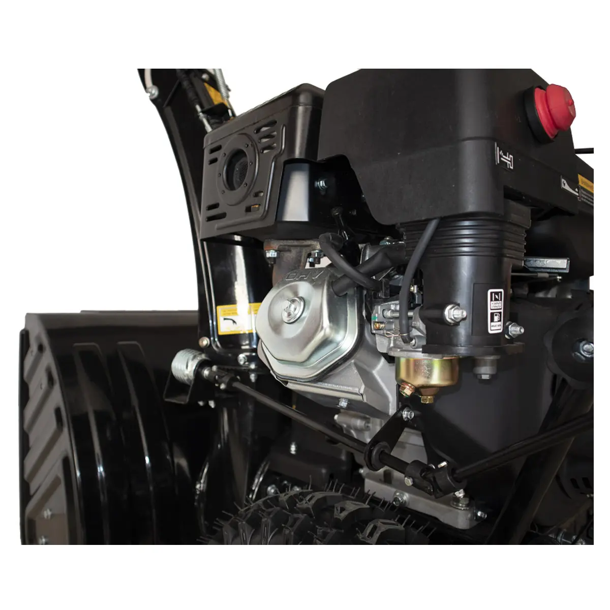 Одной из ключевых особенностей бензинового снегоуборщика является светодиодная фара, которая обеспечит комфортную работу даже в ранние утренние или поздние вечерние часы. Подогрев ручек также является важным дополнением, которое позволит избежать замерзания пальцев при длительной очистке участка.