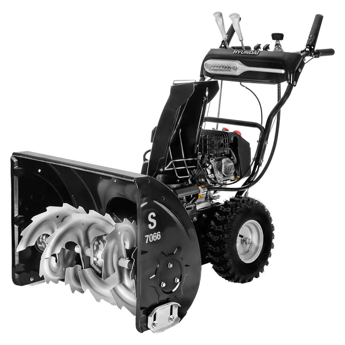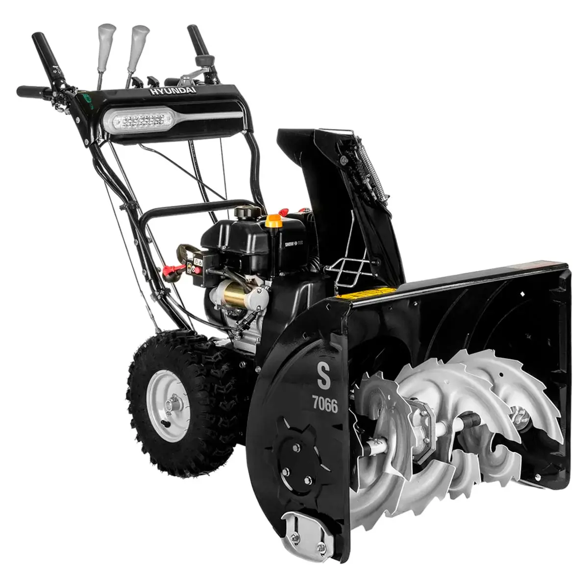 Бензиновый снегоуборщик Hyundai S 7066 оснащен мощным двигателем ICW210, который обладает 7 лошадиными силами и имеет ресурс более 2000 моточасов. Модель идеально подходит для больших участков. Ширина захвата ковша составляет 66 см, что позволяет быстро и эффективно очистить площадь до 2000 квадратных метров. Снегоуборочная машина легко справляется с высокими сугробами до 51 см, поэтому даже сильный снегопад не станет для нее помехой.