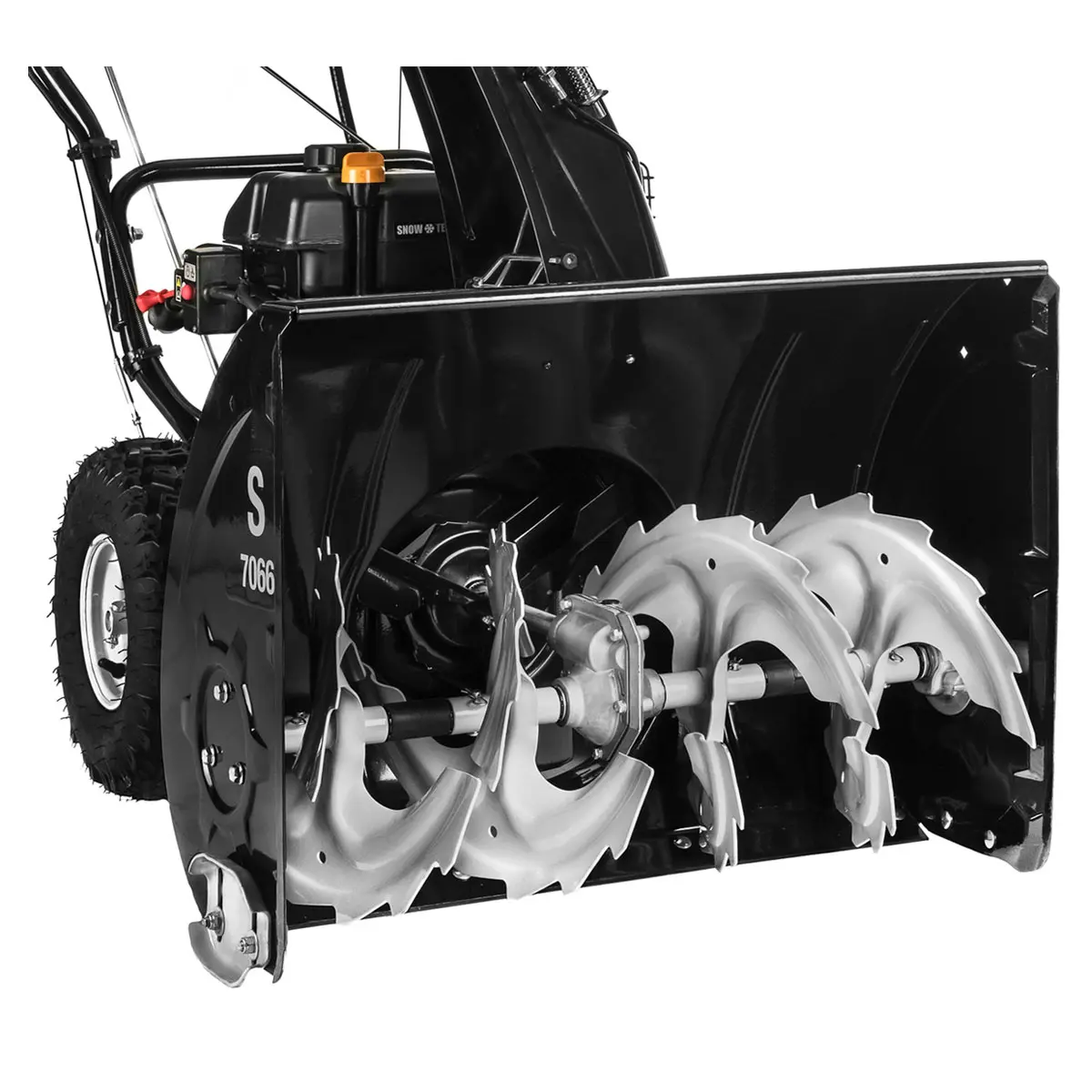 Прочные металлические шнеки с зубьями обеспечивают снегоочистителю Hyundai S 7066 отличную проходимость и справляются как с плотными комками заледеневшего снега, так и с грязью, снежной кашей и т. д.