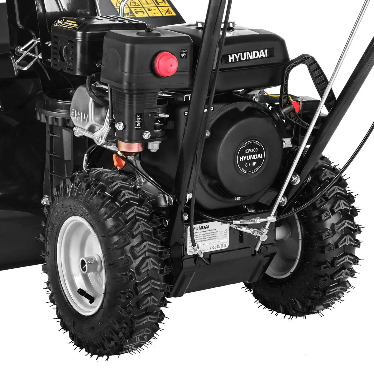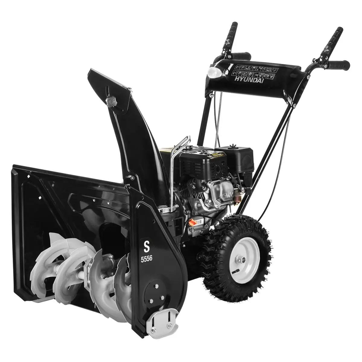 Привод колес обеспечивает удобство в использовании. Вы можете выбрать одну из четырех скоростей перемещения, в зависимости от влажности и плотности снега. Это позволяет настроить комфортный темп работы снегоочистителя. Дополнительно, снегоуборщик оснащен реверсивным ходом, который облегчает разворот машины и помогает при застревании колес Hyundai S 5556 в особо плотном снегу.