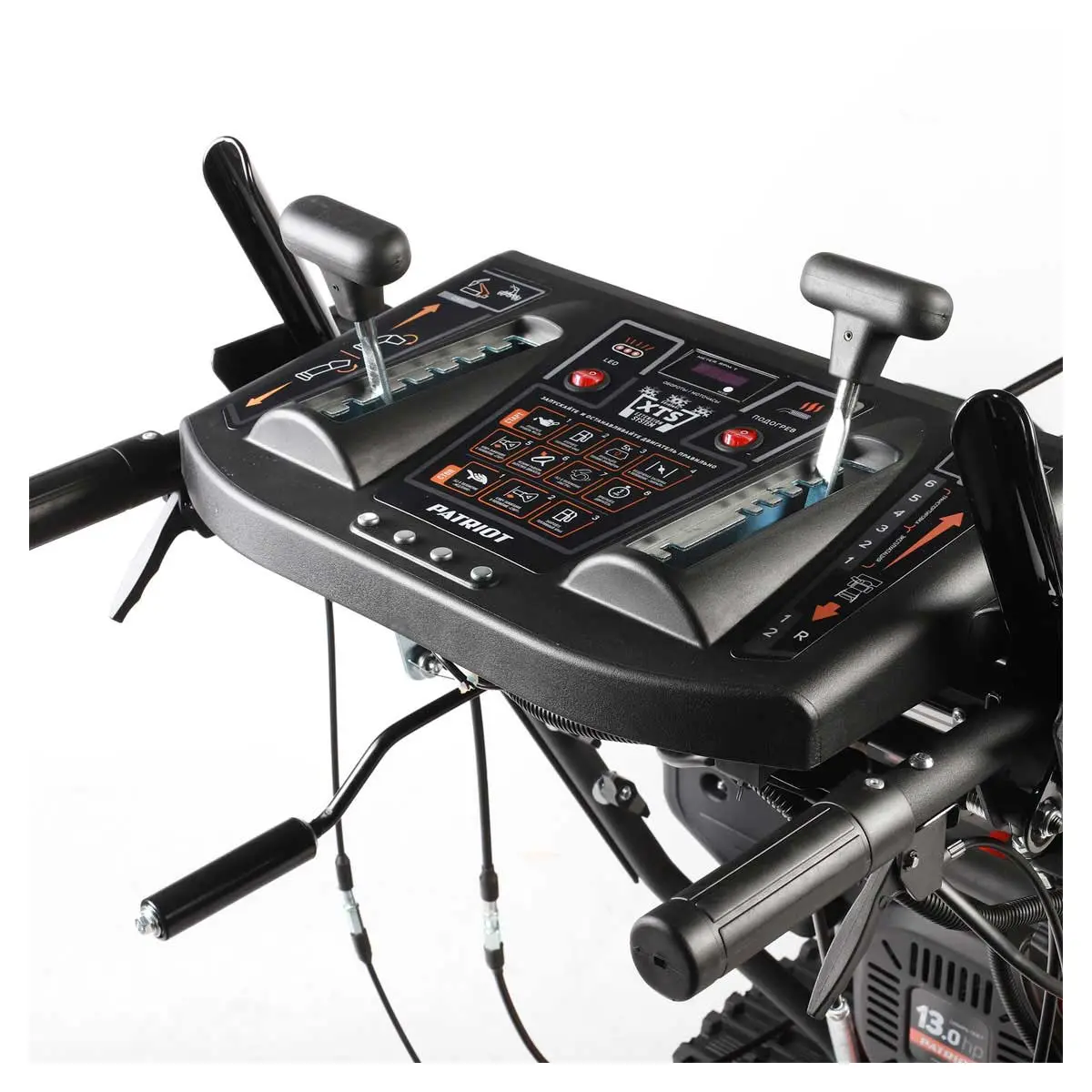 На ковше самоходной снегоуборочной машине установлены направляющие, положение которых можно выставить так, чтобы задать оптимальное расстояние между кожухом шнека и очищаемой поверхностью. Эта функция Patriot Сибирь 130 ЕТ актуальна для тех случаев, когда нужно избежать повреждения декоративных дорожек или других покрытий, скрытых под слоем снега.
