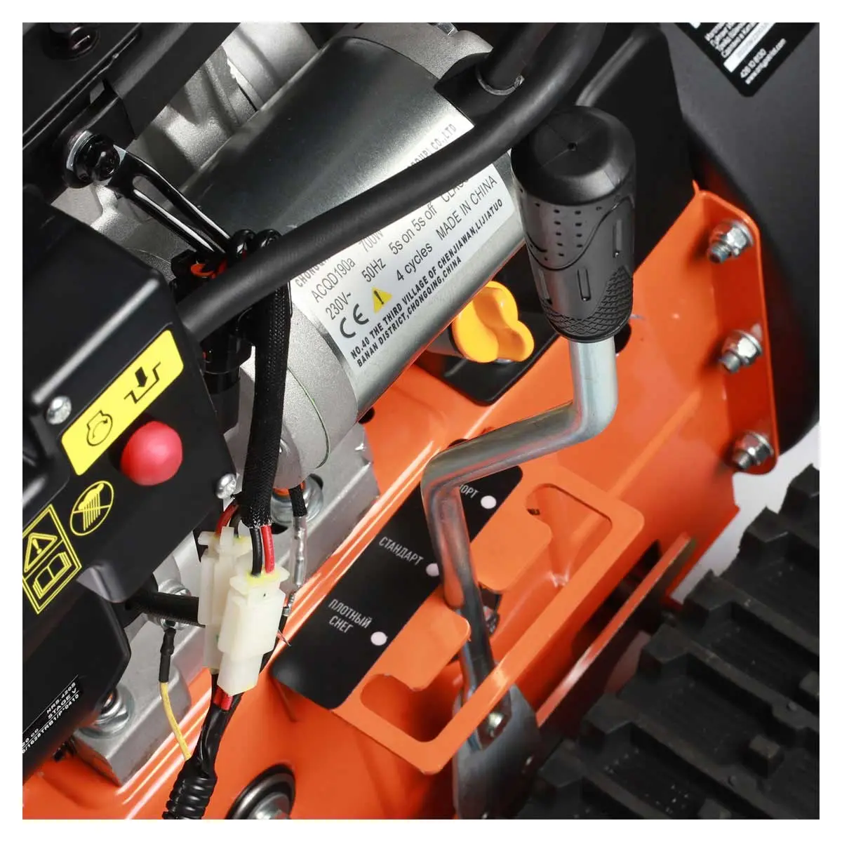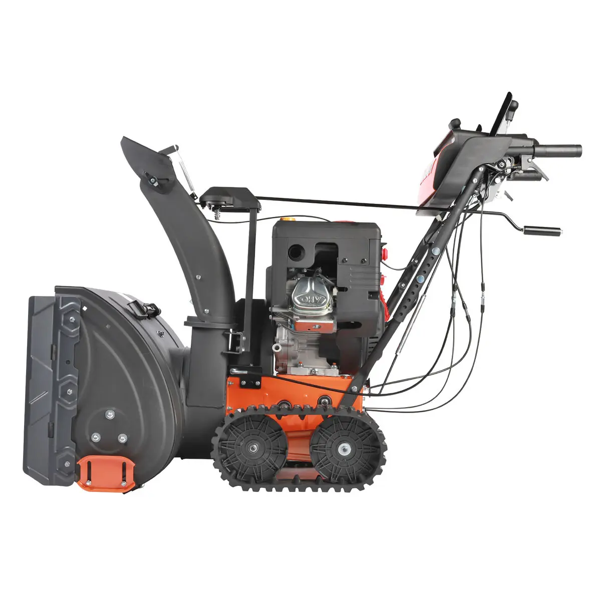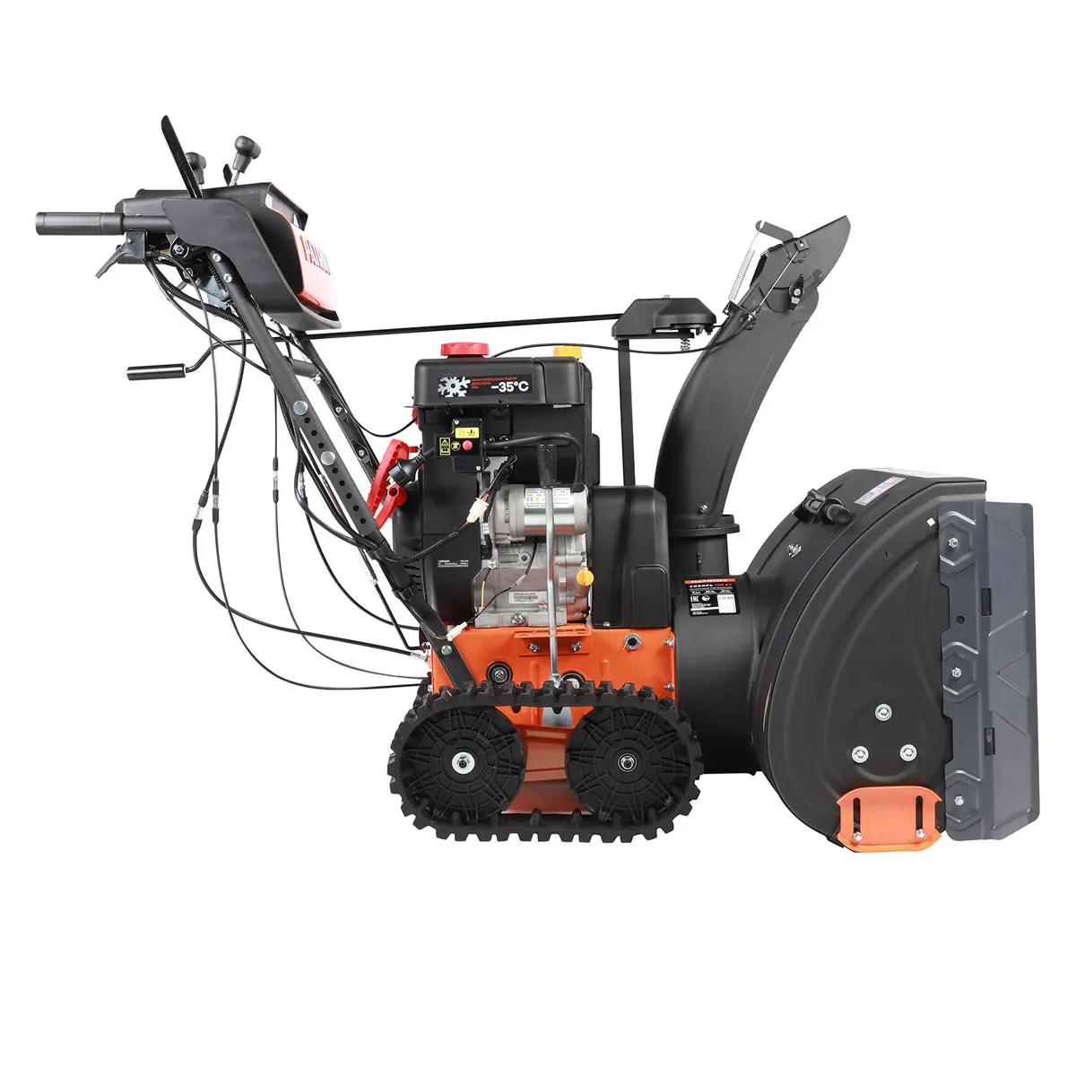 Мощность мотора бензинового снегоуборщика составляет 13 лошадиных сил, чего более чем достаточно для эффективной очистки даже в самых сложных случаях. Агрегат оснащен функцией регулировки поворота и наклона желоба выброса снега в пределах 190/70 градусов, чтобы вы могли настроить направление вылета снежной массы в зависимости от поставленных задач.