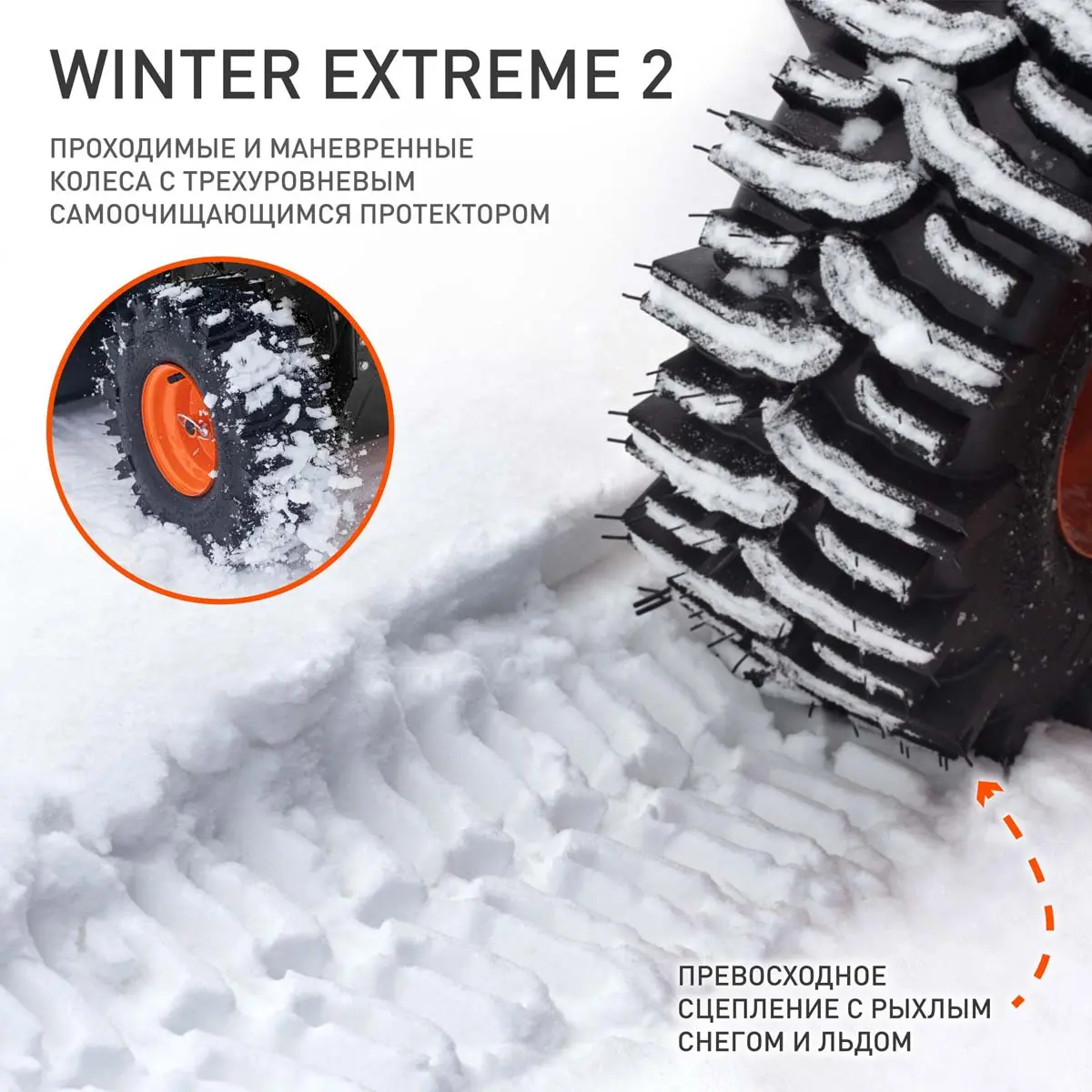 Трансмиссия с фрикционным диском делает управление снегоуборочной машиной PATRIOT PS 707 E легким и удобным. Вы сможете легко маневрировать на любой поверхности и подстраиваться под условия работы. Колеса Winter Extreme с гусеничным протектором обеспечивают отличное сцепление с поверхностью и обеспечивают стабильность при движении.