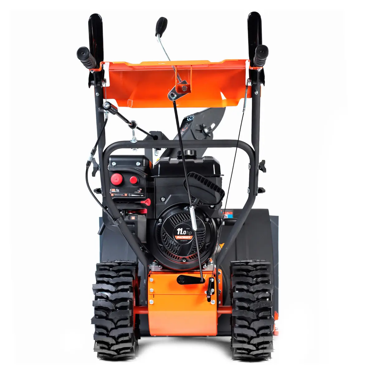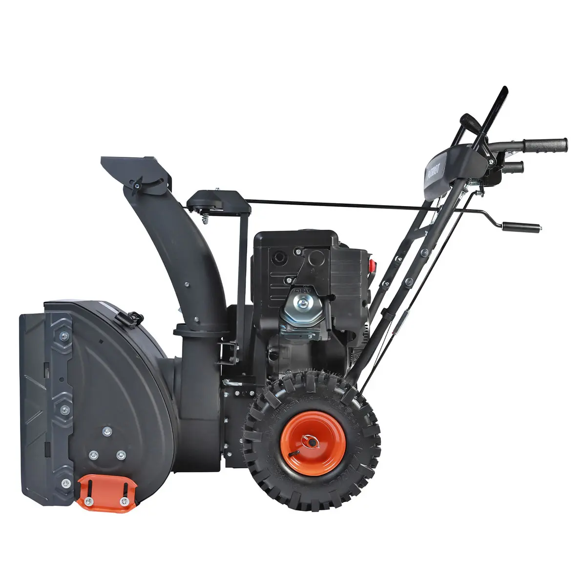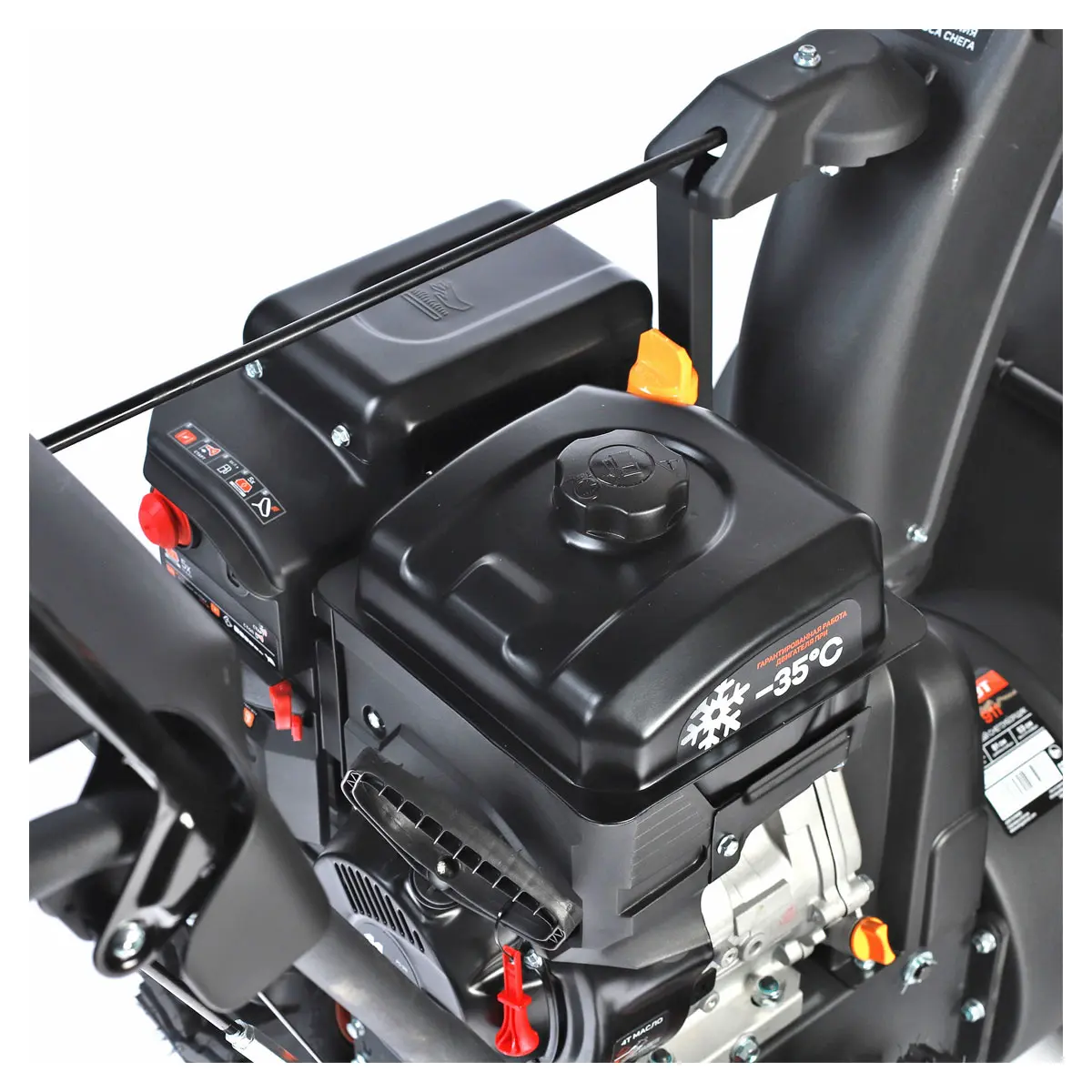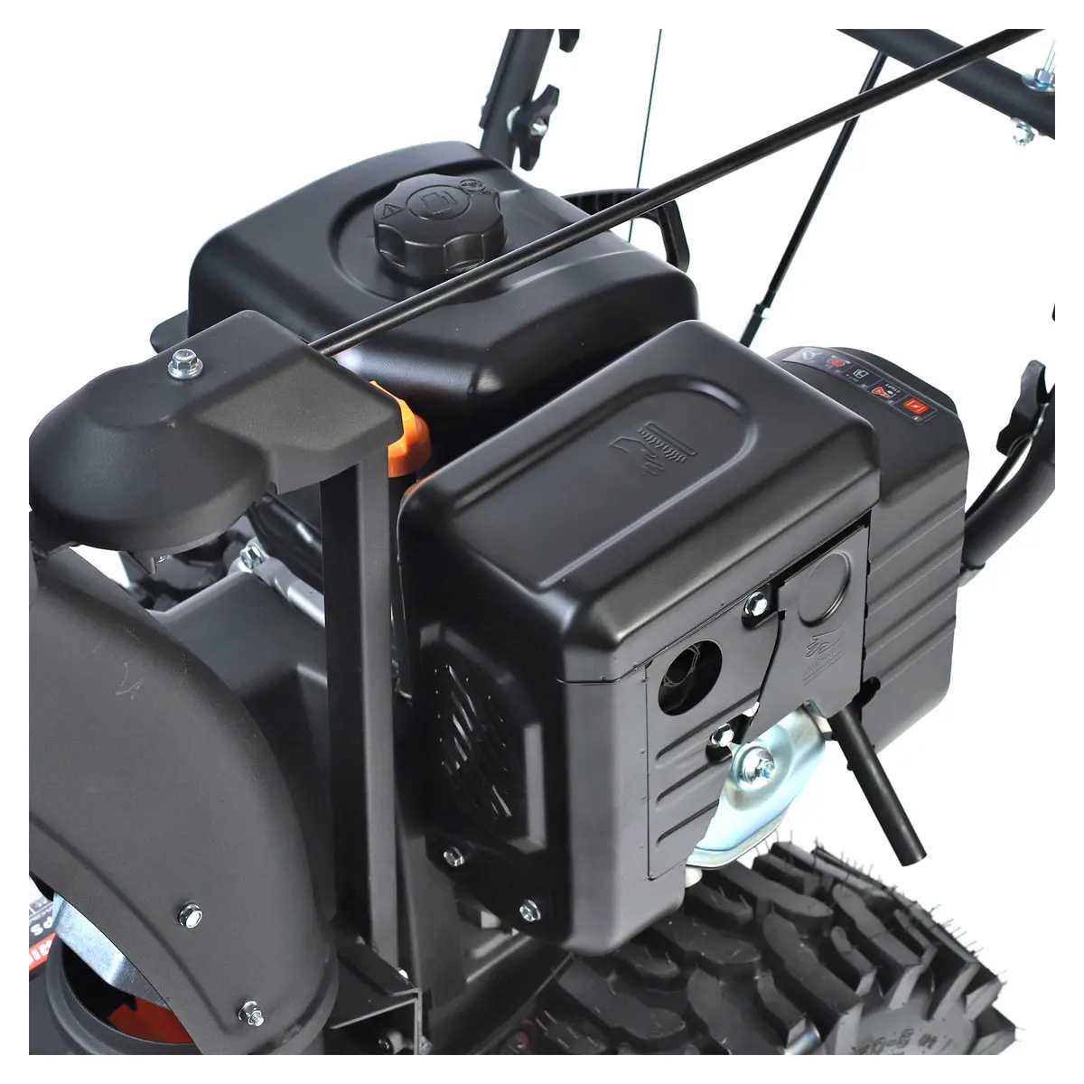 Главные особенности бензинового снегоуборщика включают: дальность выброса снега до 12 метров и топливный бак вместимостью 4,5 литров, которого хватит на длительное время работы без необходимости частой дозаправки. В комплекте снегоочистителя также идет лопата для прочистки желоба, что обеспечивает еще больше удобства при использовании.