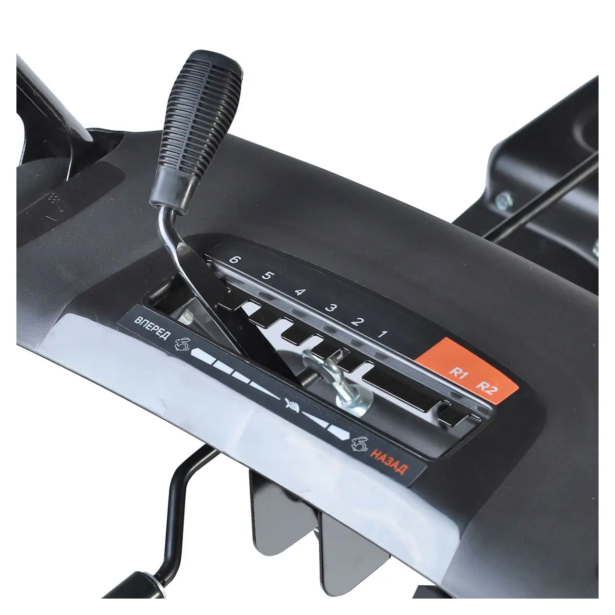 Есть возможность выбора из 8 скоростей: 6 для переднего хода и 2 для заднего, что особенно удобно во время разворотов в ограниченном пространстве и уборки участка с разной плотностью снега. Раструб выброса у снегоуборочной машины может вращаться на 190 градусов.