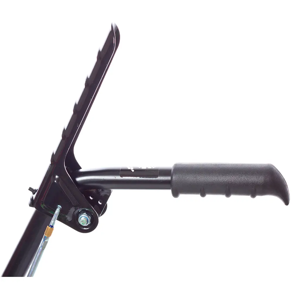 Управление направлением выброса снега осуществляется с помощью поворотной рукоятки, что позволяет оператору легко настраивать поток снега в нужную сторону. Это особенно удобно при уборке вдоль заборов, деревьев и других препятствий.
