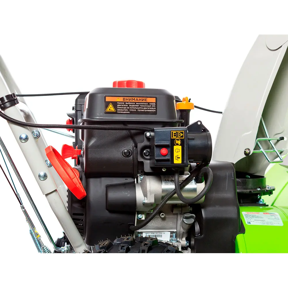 - Мощный двигатель с ручным и электростартером.