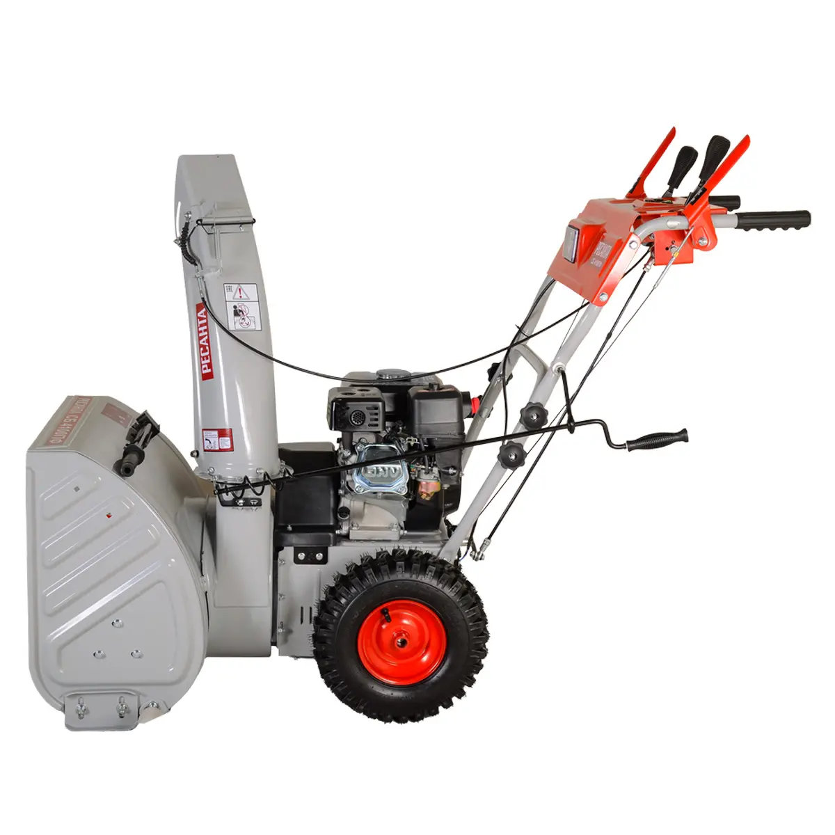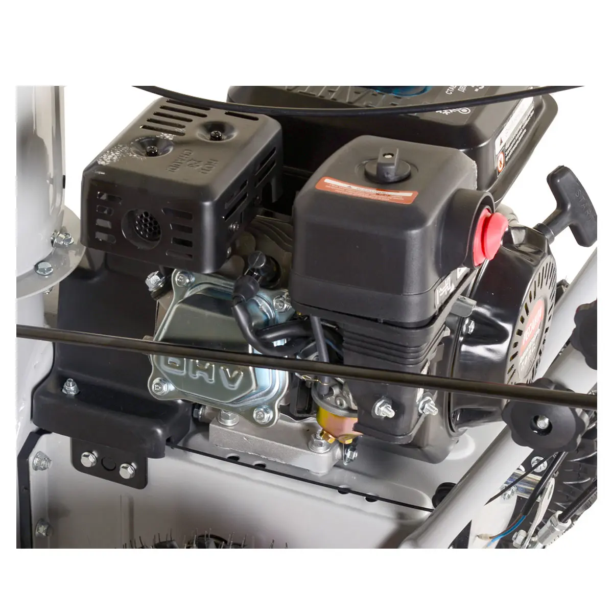 Бензиновый снегоуборщик оснащен 4-тактным двигателем с объемом бака в 3,6 литра, что обеспечивает надежную работу в течение продолжительного времени. Мощность двигателя составляет 7 лошадиных сил, что позволяет справиться с любым снегопадом.
