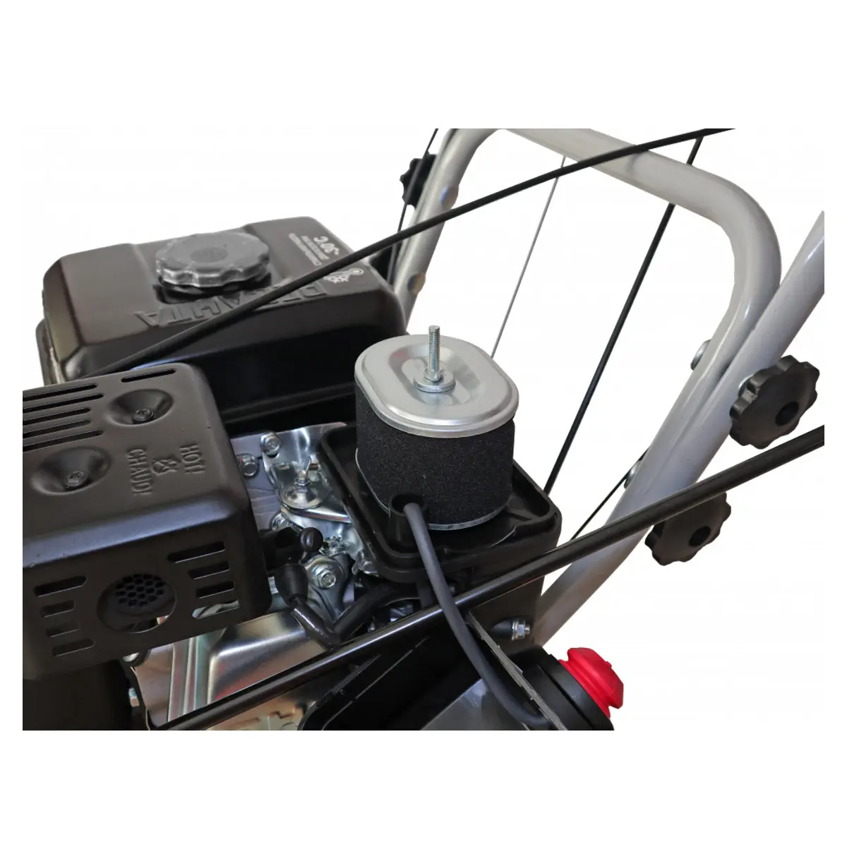Снегоуборочная машина оснащена мощным четырехтактным бензиновым двигателем мощностью 8 л.с., который обеспечивает надежную работу устройства. Двигатель имеет воздушное охлаждение, что гарантирует его эффективную работу даже в самых экстремальных условиях. Чтобы запустить агрегат быстро и легко, вы можете использовать электростартер, который работает от сети 220 В. Это особенно удобно, если снегоуборщик простоял на улице в течение длительного времени.