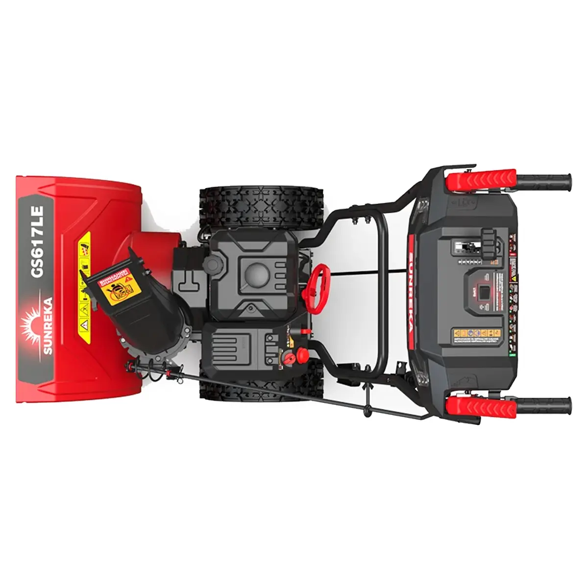 Модель SUNREKA GS617LE — самоходная. Коробка передач (6 скоростей вперед и 2 назад) позволяет плавно двигаться по целине или быстро перемещаться по уже расчищенным зонам. Особого внимания заслуживают колеса: они выполнены по безвоздушной технологии, а значит, им не страшны острые камни или скрытый под снегом строительный мусор. Агрессивный рисунок протектора исключает пробуксовку на обледенелых участках.