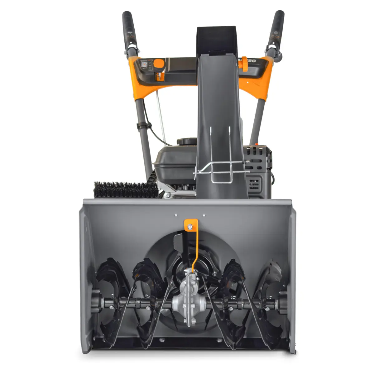 Снегоочиститель оснащен высокопроизводительным тандемом: мощным зазубренным шнеком диаметром 25 см и трехлопастной крыльчаткой диаметром 26,5 см. Зазубренная кромка шнека не просто собирает свежевыпавший снег, она буквально перемалывает и измельчает даже слежавшиеся сугробы и небольшой наст, подготавливая их к эффективному выбросу. Мощная крыльчатка затем с силой выбрасывает эту массу на значительное расстояние, обеспечивая быстрое и чистое удаление снега с дорожек, небольших парковок и придомовых территорий.