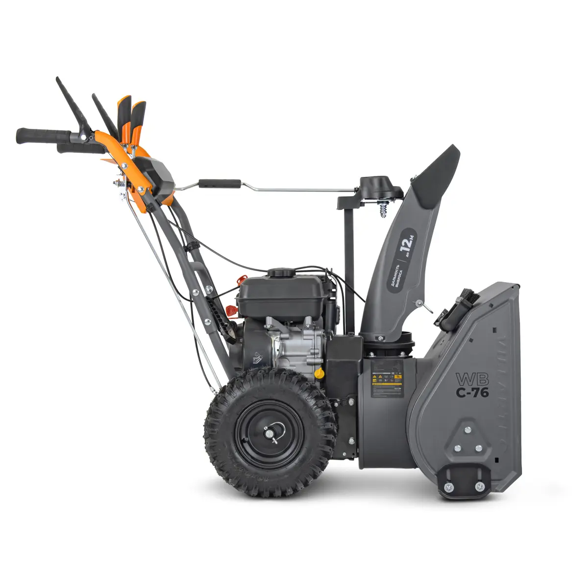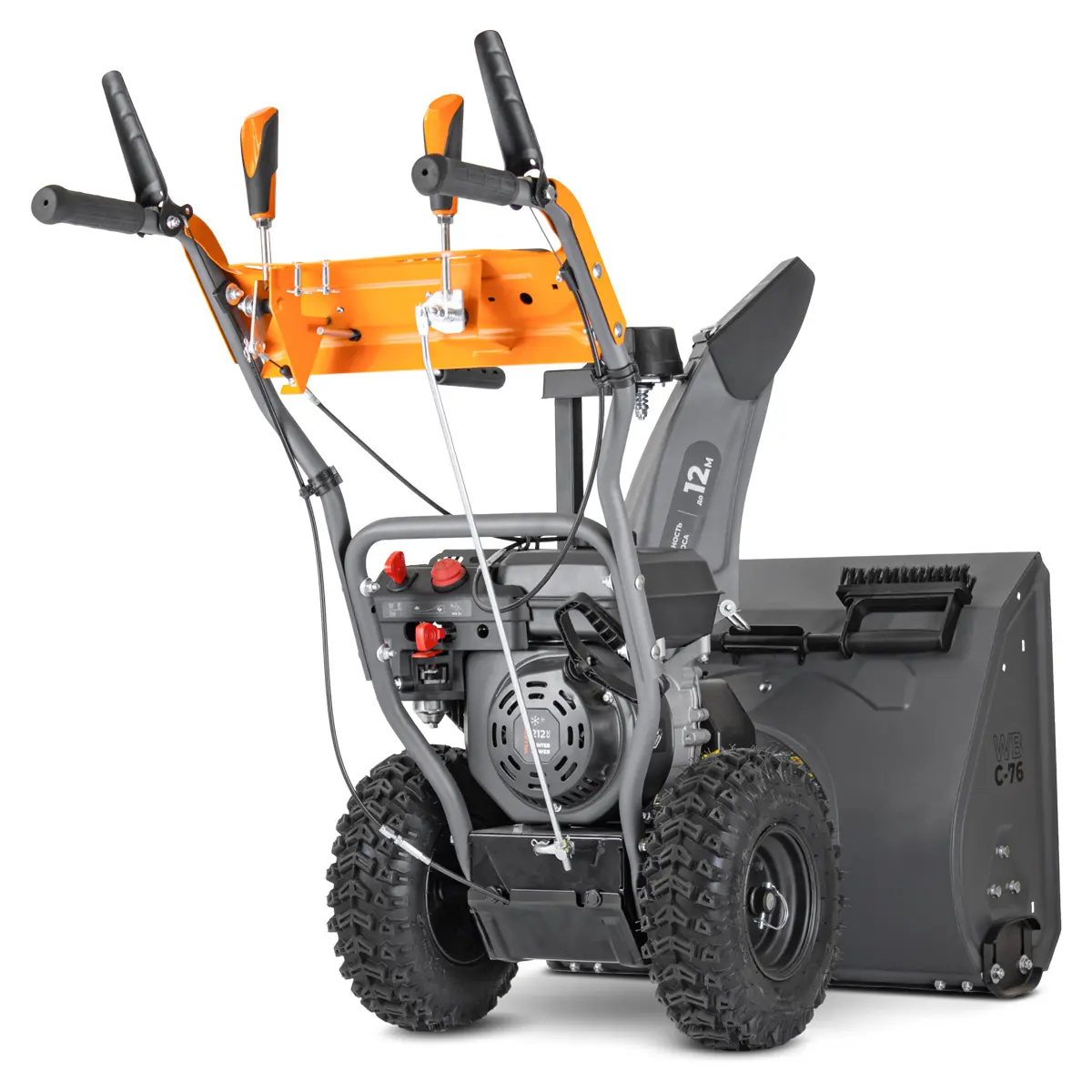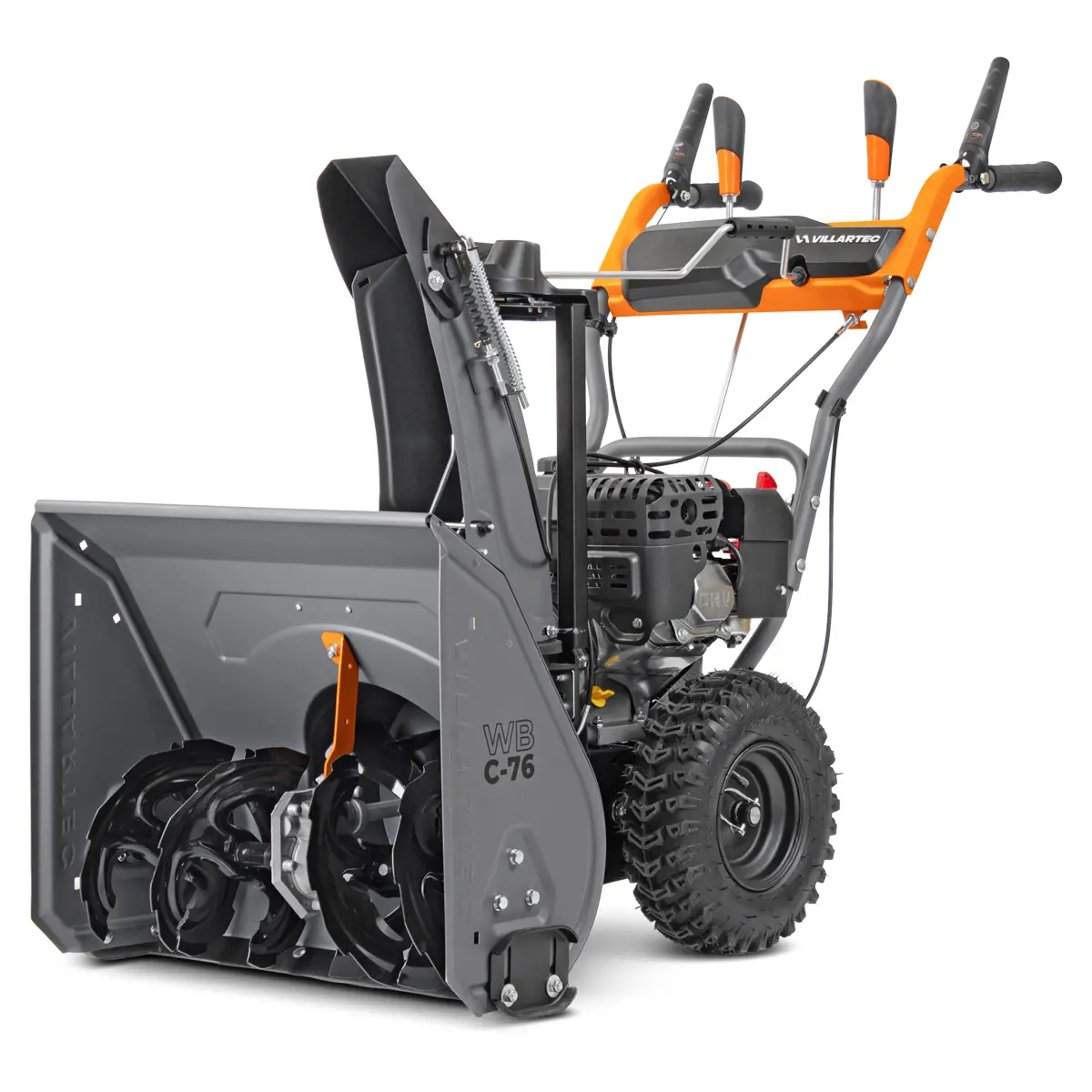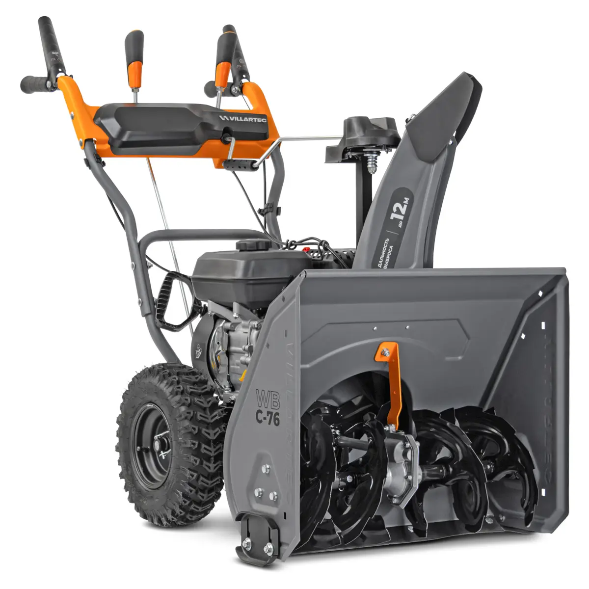 Ключевым элементом эффективной уборки снега в VILLARTEC WB C-76 является его мощный рабочий механизм. Снегоуборщик оснащен прочным зазубренным шнеком диаметром 25 см, который агрессивно справляется даже с обледеневшим и плотным снегом, эффективно собирая его в камеру. За ним следует специальная трехлопастная крыльчатка диаметром 26,5 см, которая обеспечивает мощный и направленный выброс снежной массы. Эта комбинация гарантирует, что снег не просто собирается, но и эффективно отбрасывается на значительное расстояние, минимизируя повторное попадание на очищенную территорию.