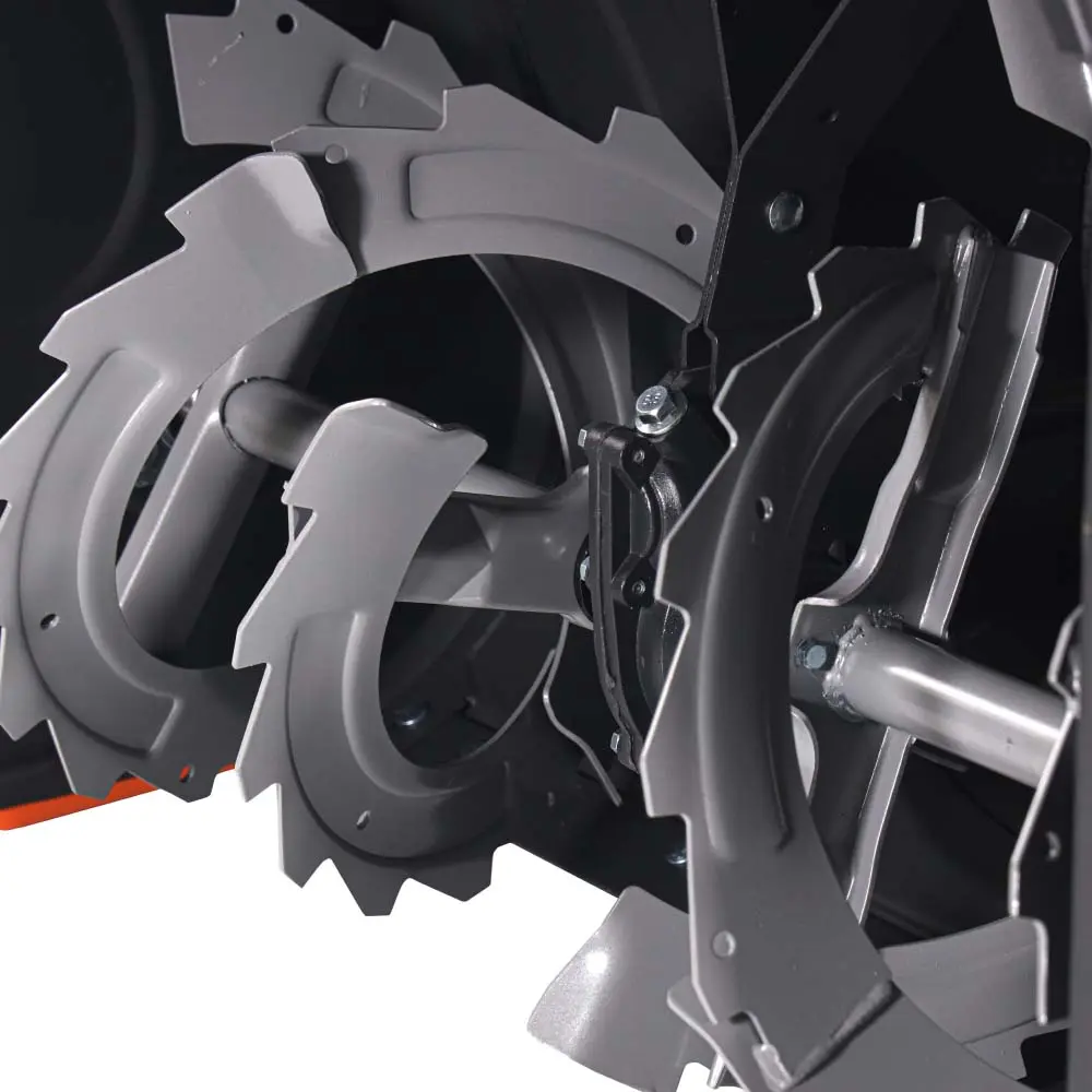 Управление снегоуборочной машиной очень простое, благодаря обновленной панели с кнопками, которая позволяет настроить нужный режим работы, включая дальность и угол выброса снега. Кроме того, модель оснащена увеличенными шинами с противоскользящим покрытием и опорными лыжами, обеспечивающими высокую маневренность и устойчивость на различных поверхностях.