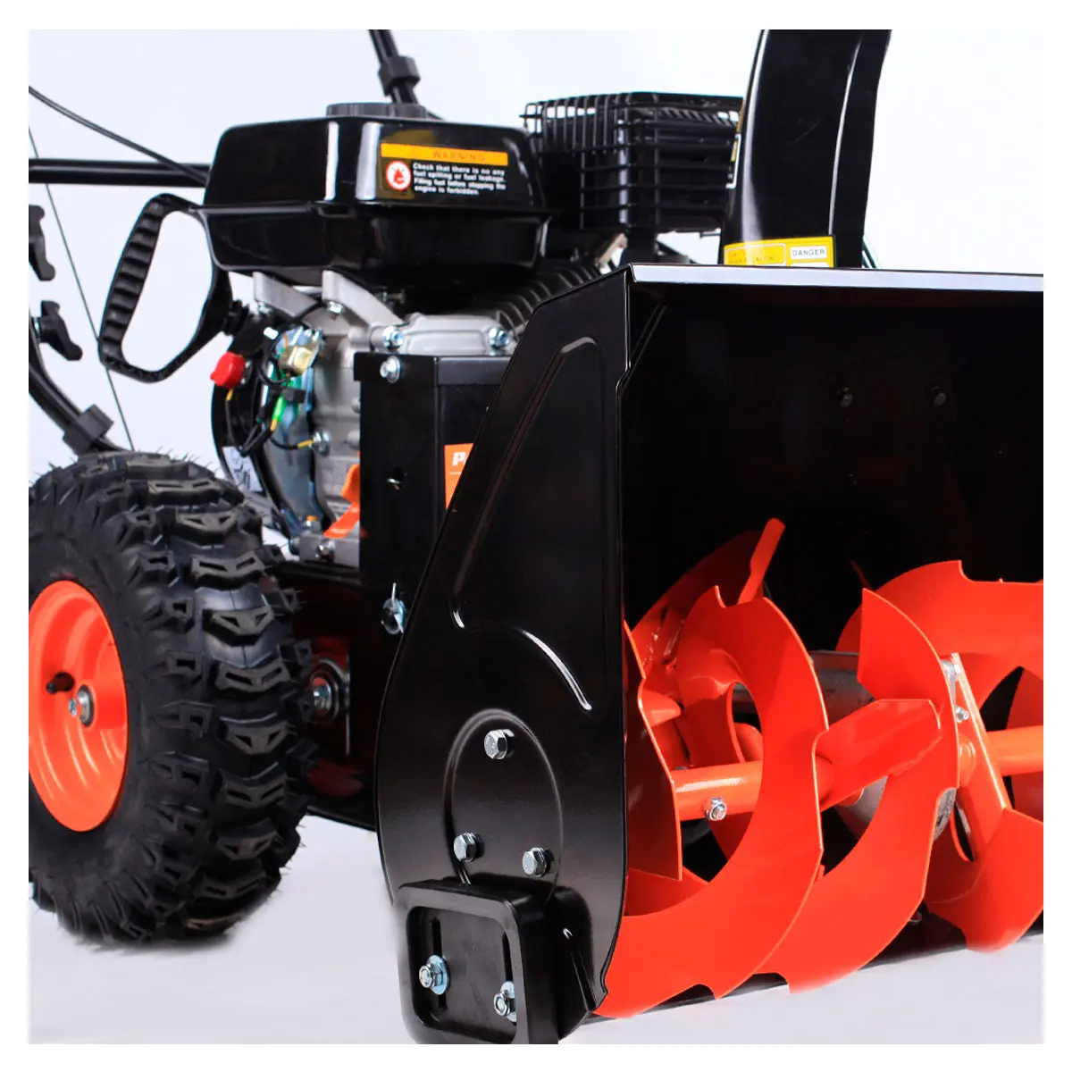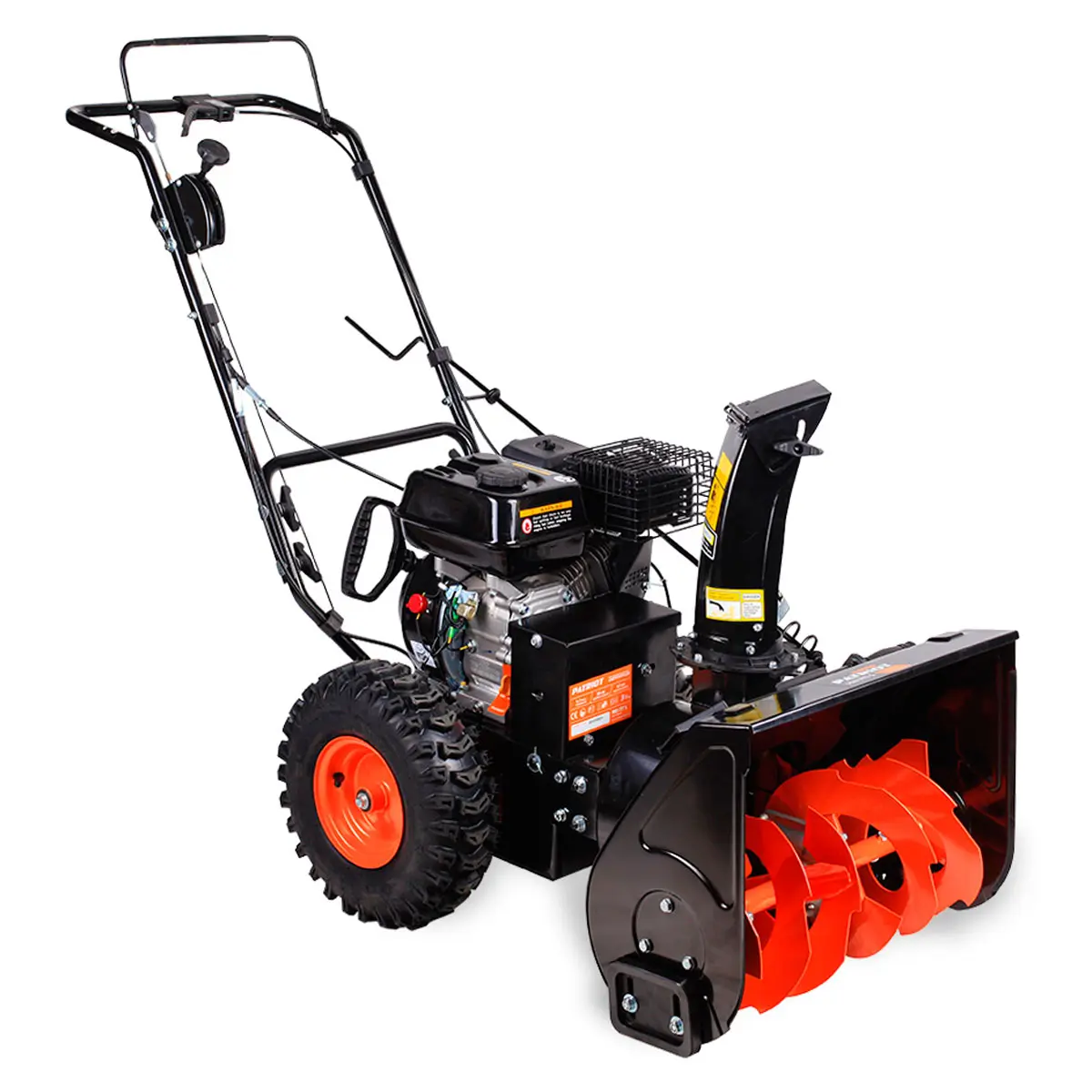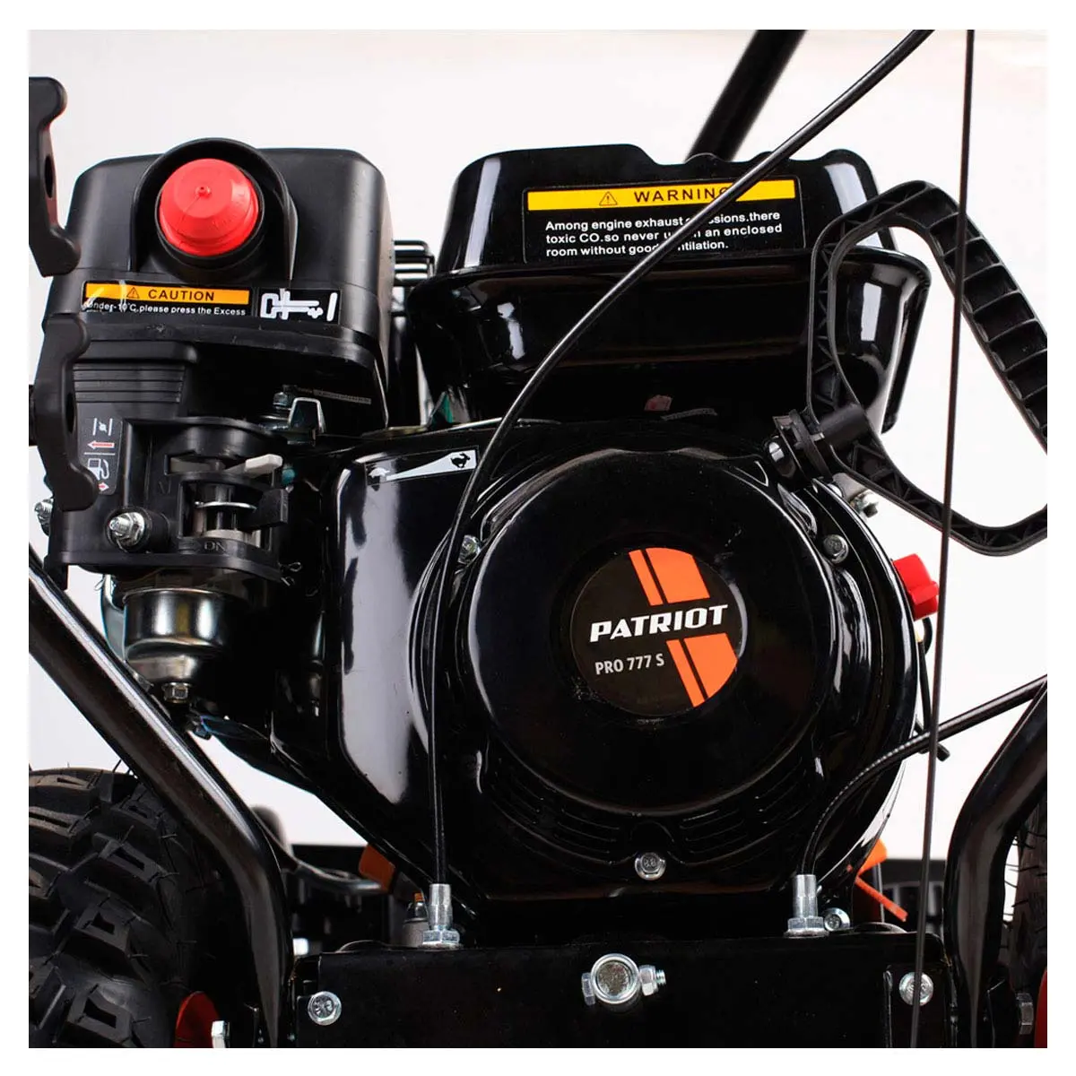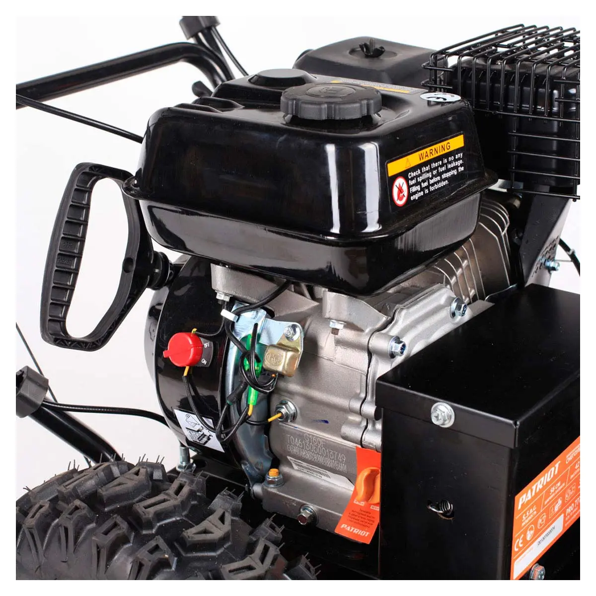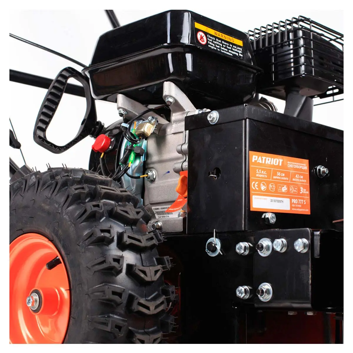 Снегоуборщик Patriot PRO 777S имеет колеса тракторного типа с глубоким рельефным рисунком, обеспечивающим хорошее сцепление и исключающим пробуксовку на обледенелой поверхности.