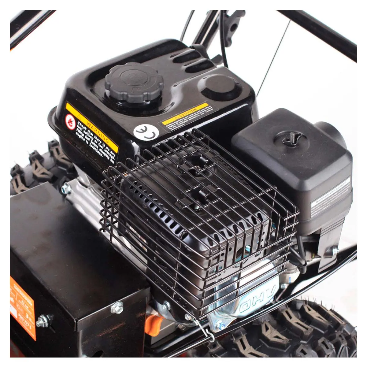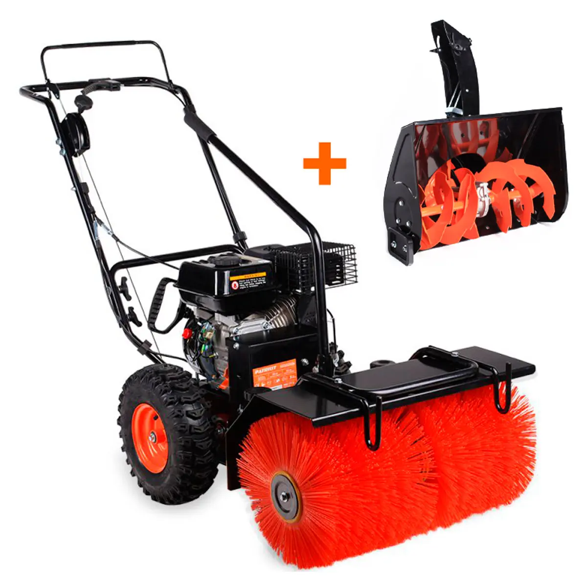 Одним из преимуществ бензинового снегоуборщика является возможность летнего использования. Зимой щетку из комплекта можно задействовать, например, для бережной очистки ледяного катка от тонкого слоя снега, а летом она пригодится для подметания пыли, земли и легкого мусора с дорожек. Регулировка поворота щетки осуществляется отдельным рычагом, а степень прижима можно настроить с помощью высоты подъема опорных колес.