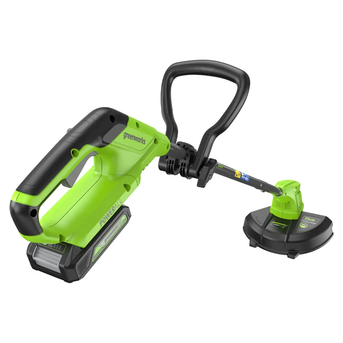 Триммер Greenworks G24LT251 24V 2113307SA (25 см) аккумуляторный — легкий и компактный триммер из серии 24V для скашивания травы. Оснащен пластиковым ножом с шириной скашивания 25 см. Имеет стальную штангу из 3-х секций и D-образную ручку.