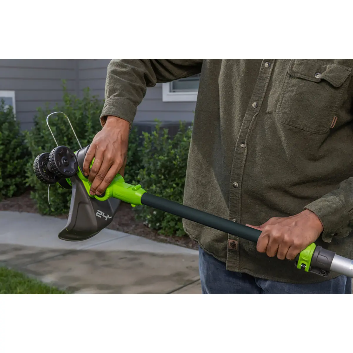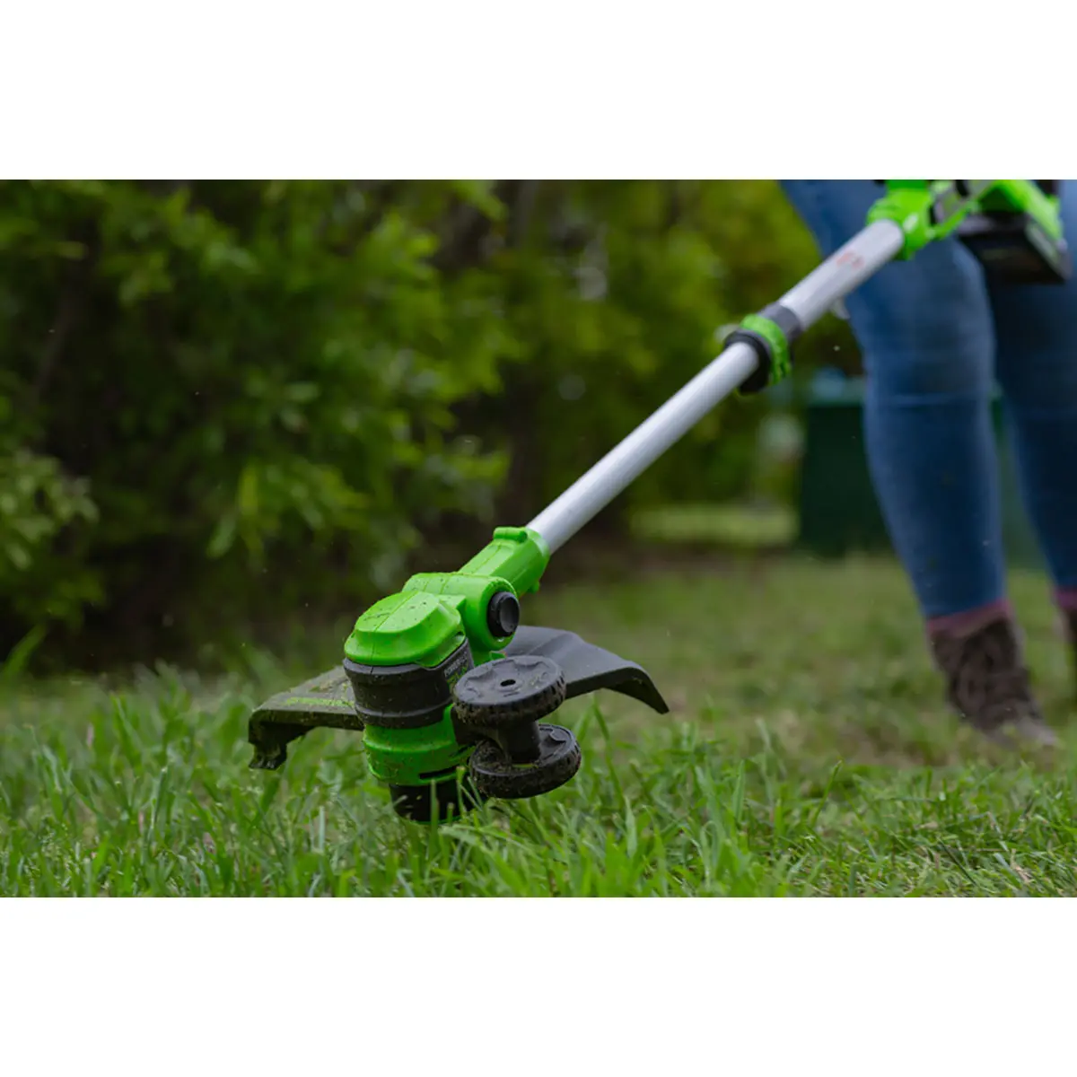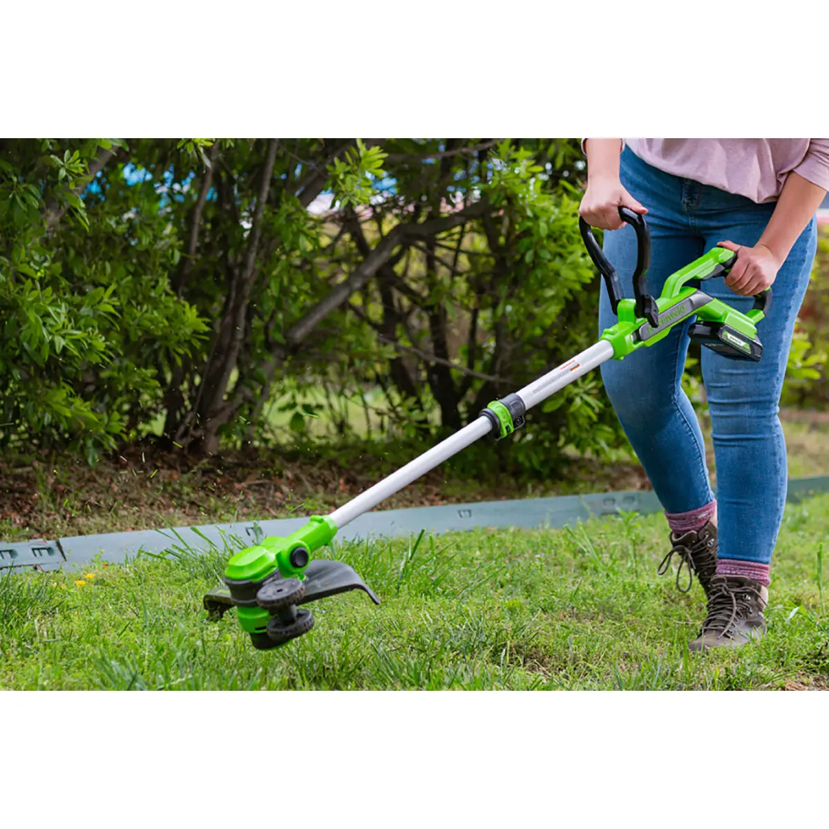 Триммер аккумуляторный Greenworks G24LT301, 24V, 30 см (арт. 2113207) – устройство 2 в 1 – садовый триммер и кромкорез. Предназначен для кошение травы на небольших участках, а также там, где доступ газонокосилки затруднен – в узких местах, на склоне, на неровной поверхности. Полноценная замена сетевому инструменту, его главное преимущество – автономность.