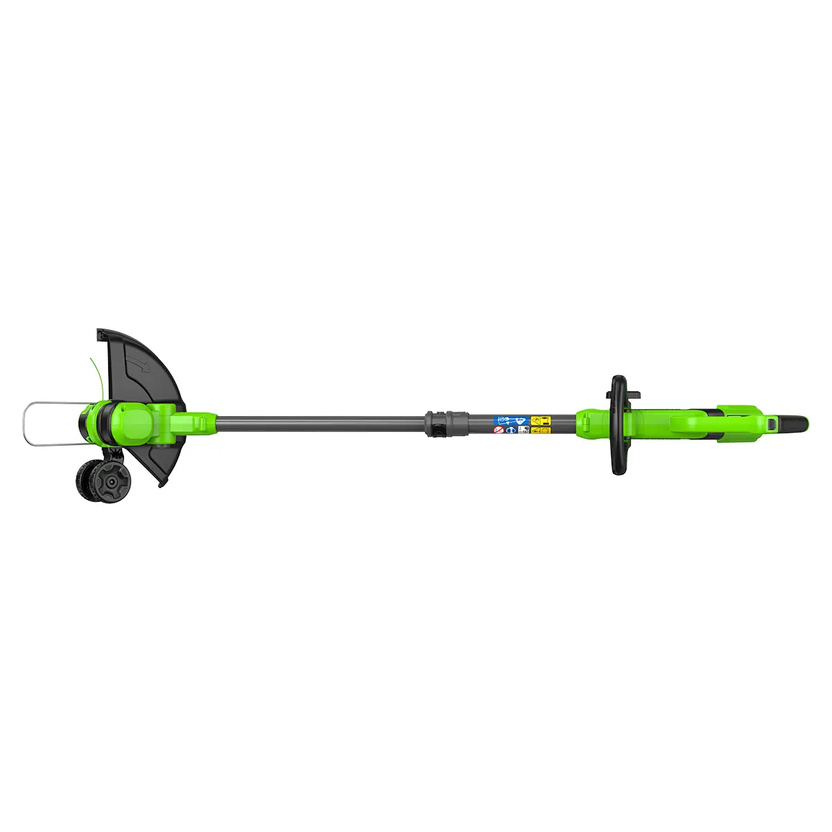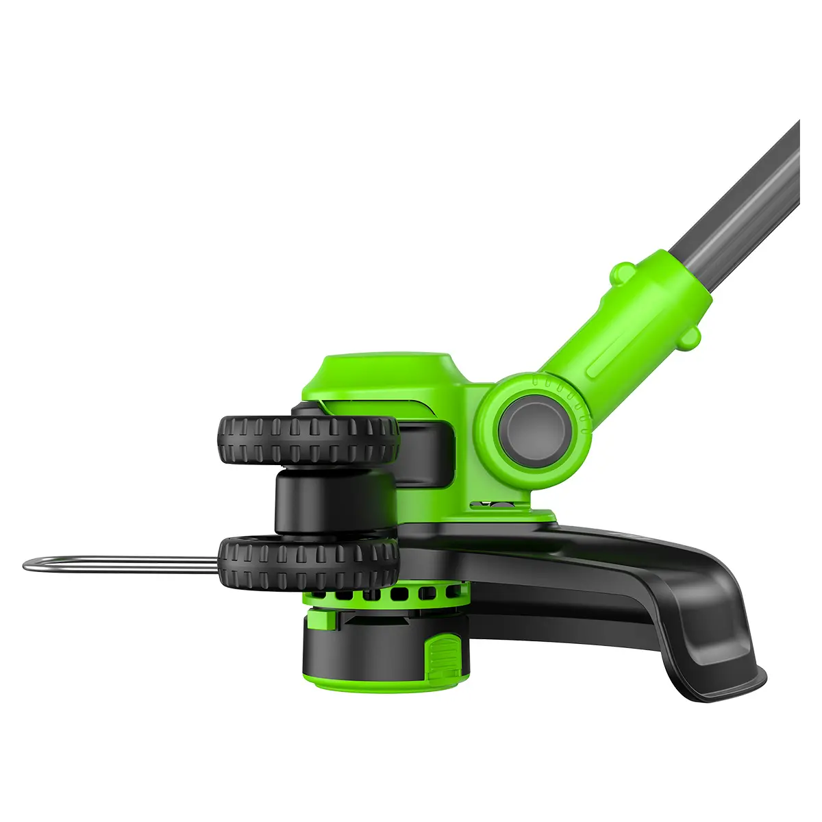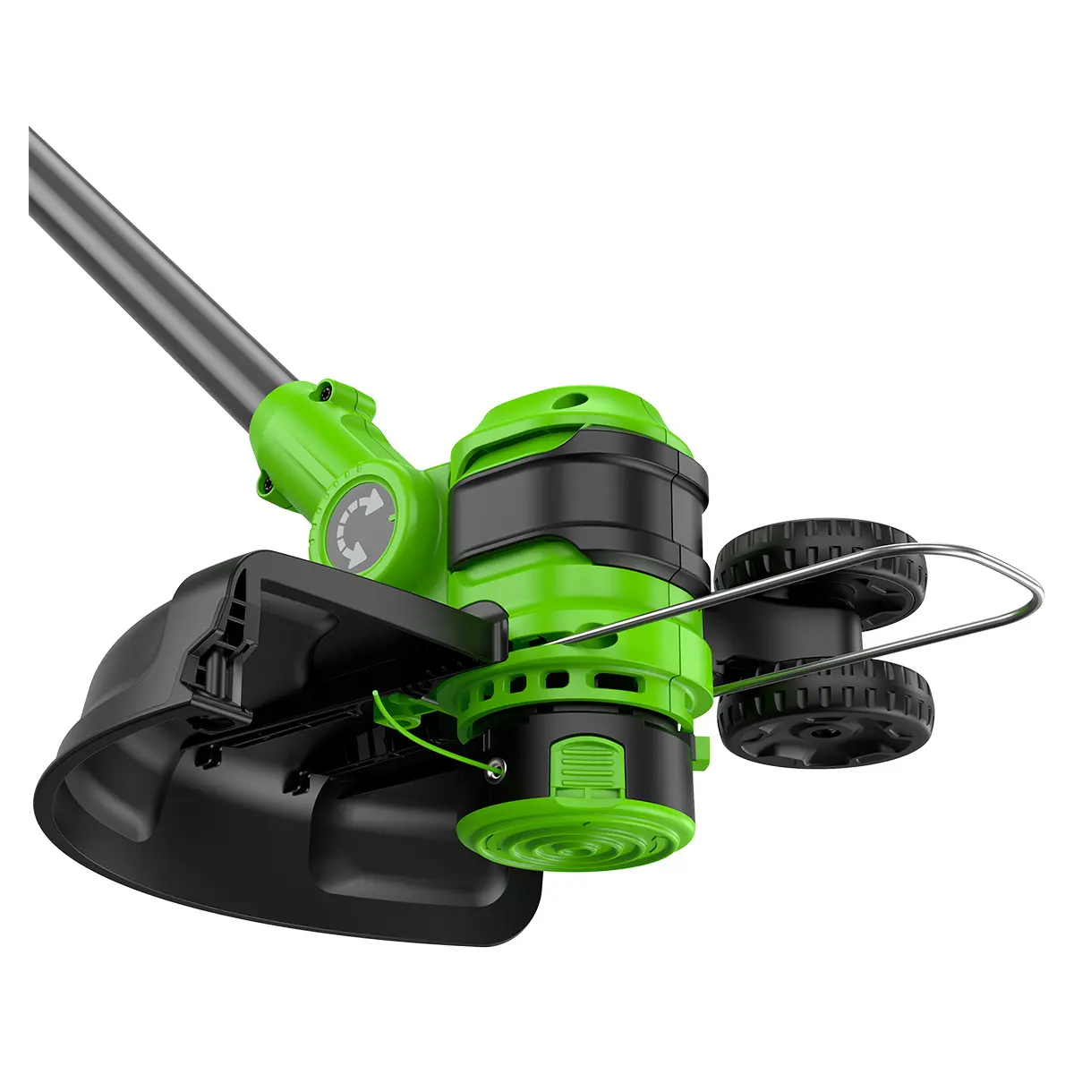 В режиме подрезки кромок режущая часть поворачивается вместе с нижней частью штанги и устанавливается вертикально, а расположенные на ней колеса предохраняют инструмент от касания земли. Кромка вашего газона всегда будет ровной и аккуратной.