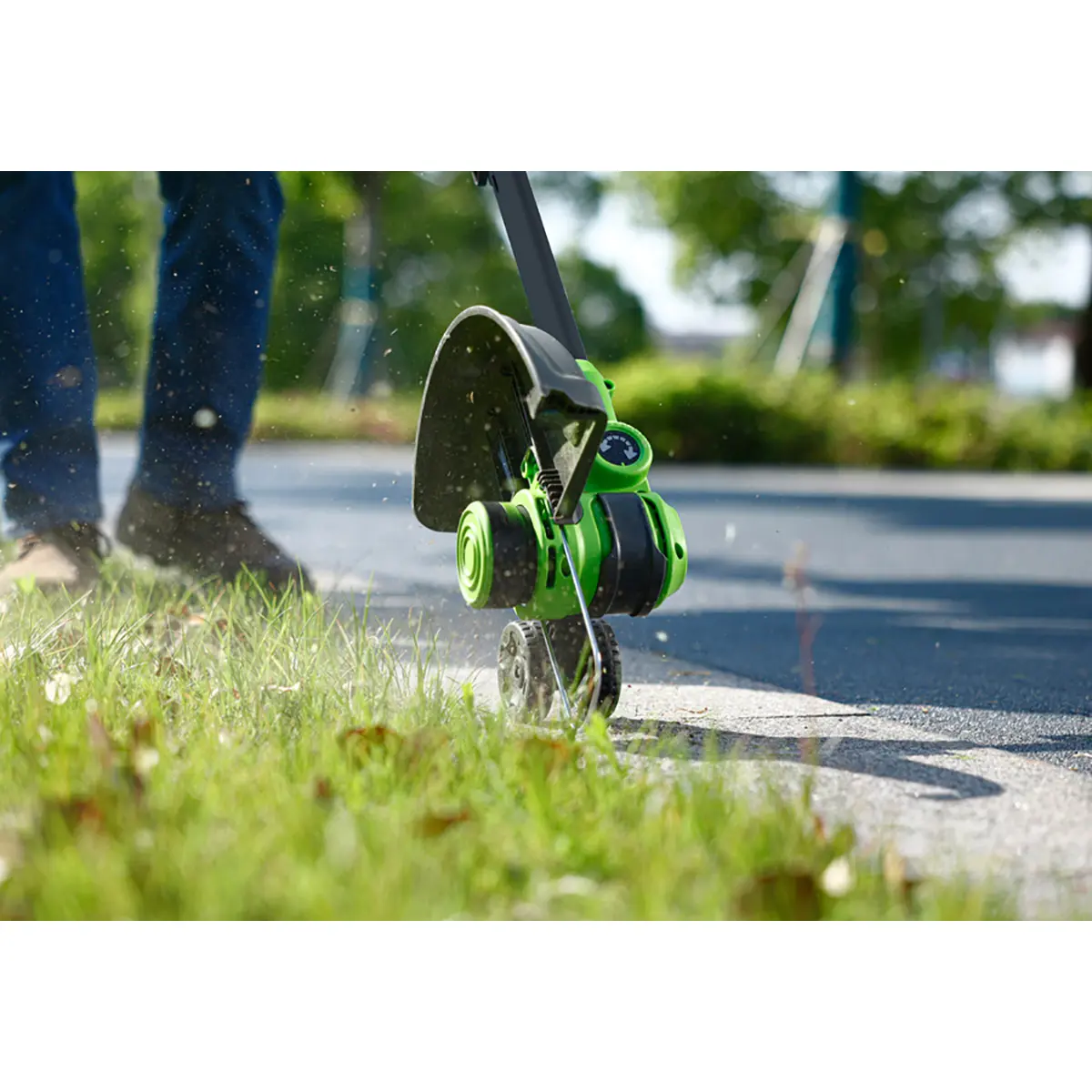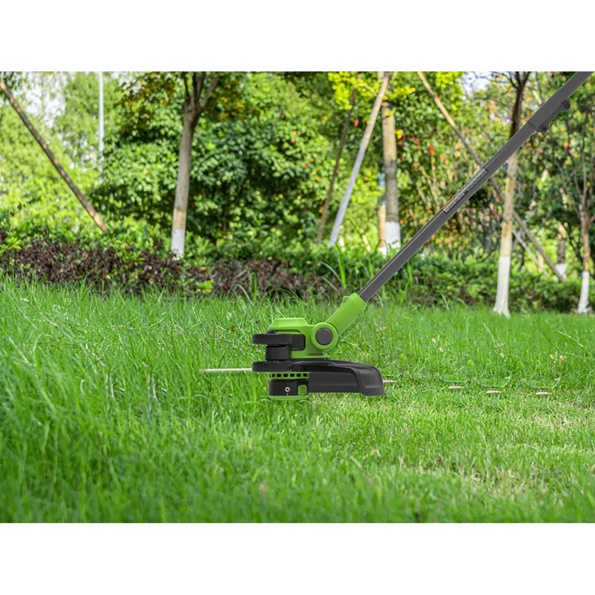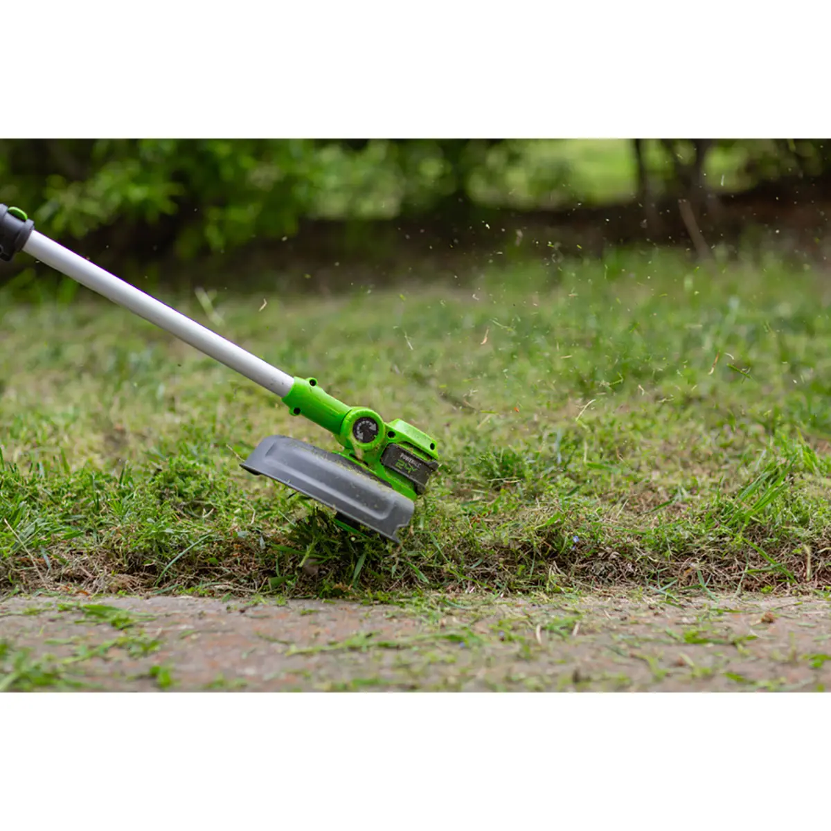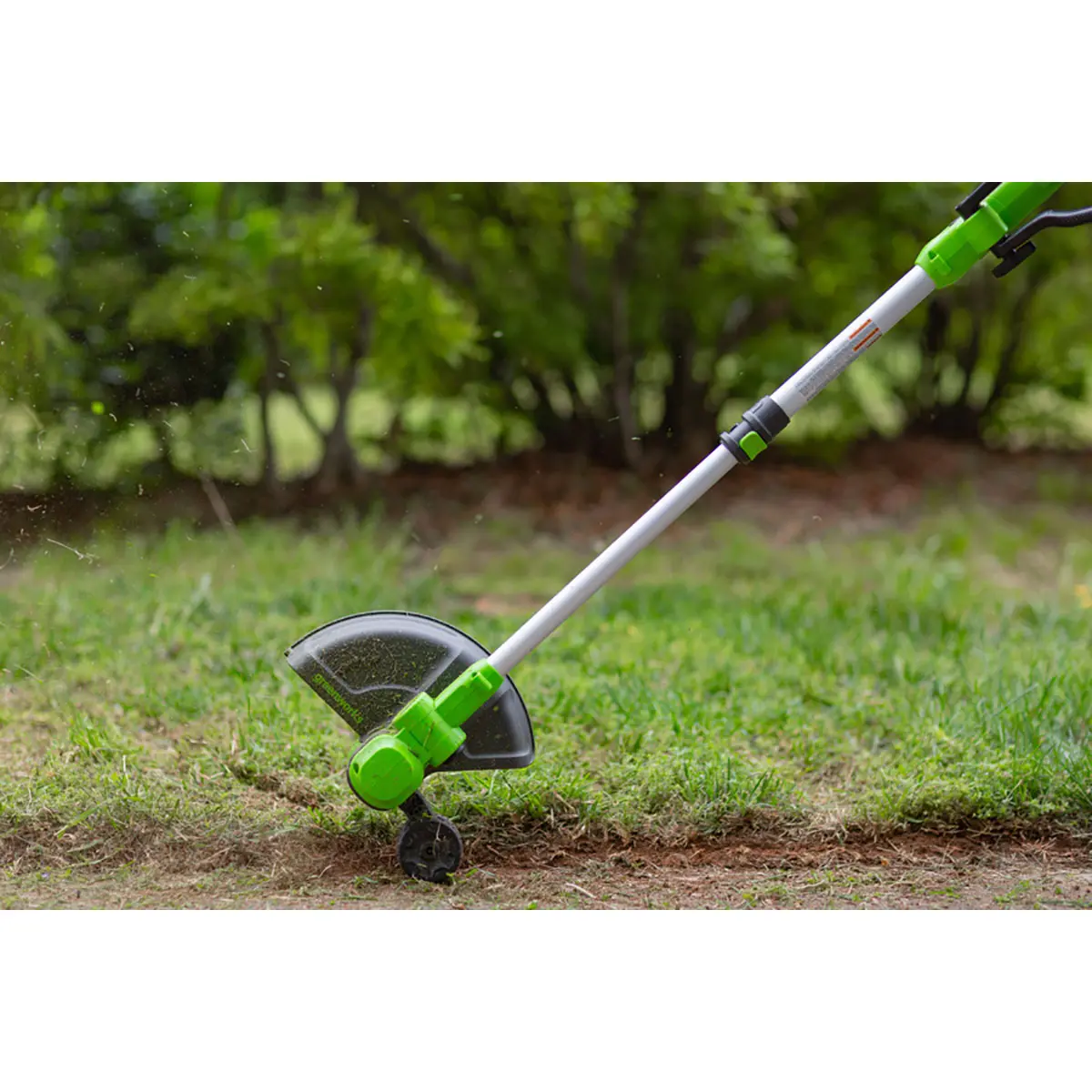 В режиме подрезки кромок режущая часть поворачивается вместе с нижней частью штанги и устанавливается вертикально, а расположенные на ней колеса предохраняют инструмент от касания земли. Кромка вашего газона всегда будет ровной и аккуратной.