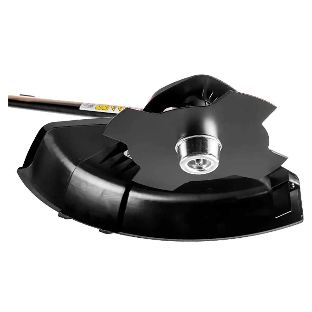 Автоматическое выдвижение косильной лески из шпули производится при касании триммерным блоком грунта в процессе работы. Это дает возможность выполнять кошение в непрерывном режиме, без остановки и повторного запуска Greenworks GD40BC при необходимости удлинения режущей струны. Нож на кожухе, удаляющий излишки лески, устанавливается в одном из двух положений, позволяя менять диаметр зоны кошения для увеличения скорости реза при скашивании бурьяна или ширины прохода при стрижке газонов.