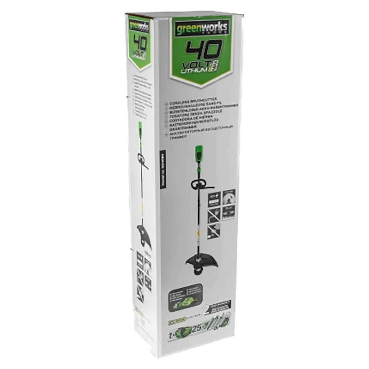 Аккумуляторный триммер Greenworks GD40BC – автономное решение бытового класса, предназначенное для работ по уходу за газонами и очистки участков от травяных зарослей. Оборудование отличается повышенной мощностью и предлагает целый ряд функций, которые присущи косильным приспособлениям профессиональной категории. Аккумулятор можно приобрести отдельно, либо использовать любую 40-вольтовую батарею торговой марки Greenworks от других фирменных электроинструментов линейки G/GD40.